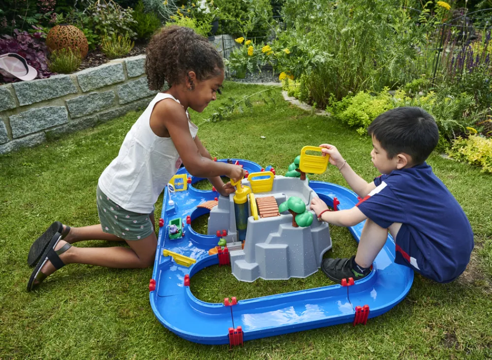 Mød AquaPlays nyeste eventyr – Bjergsøen, som vil holde børnene beskæftiget i timer, med alle de nyeste legemuligheder. Det store sæt har ud over bjerget flere løsdele, bl.a Frøen Niels og Bjørnen Bo, og giver mulighed for mange timers leg.
