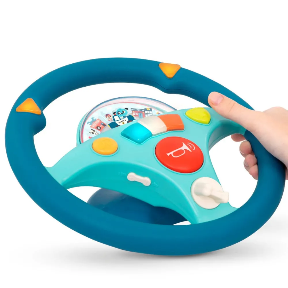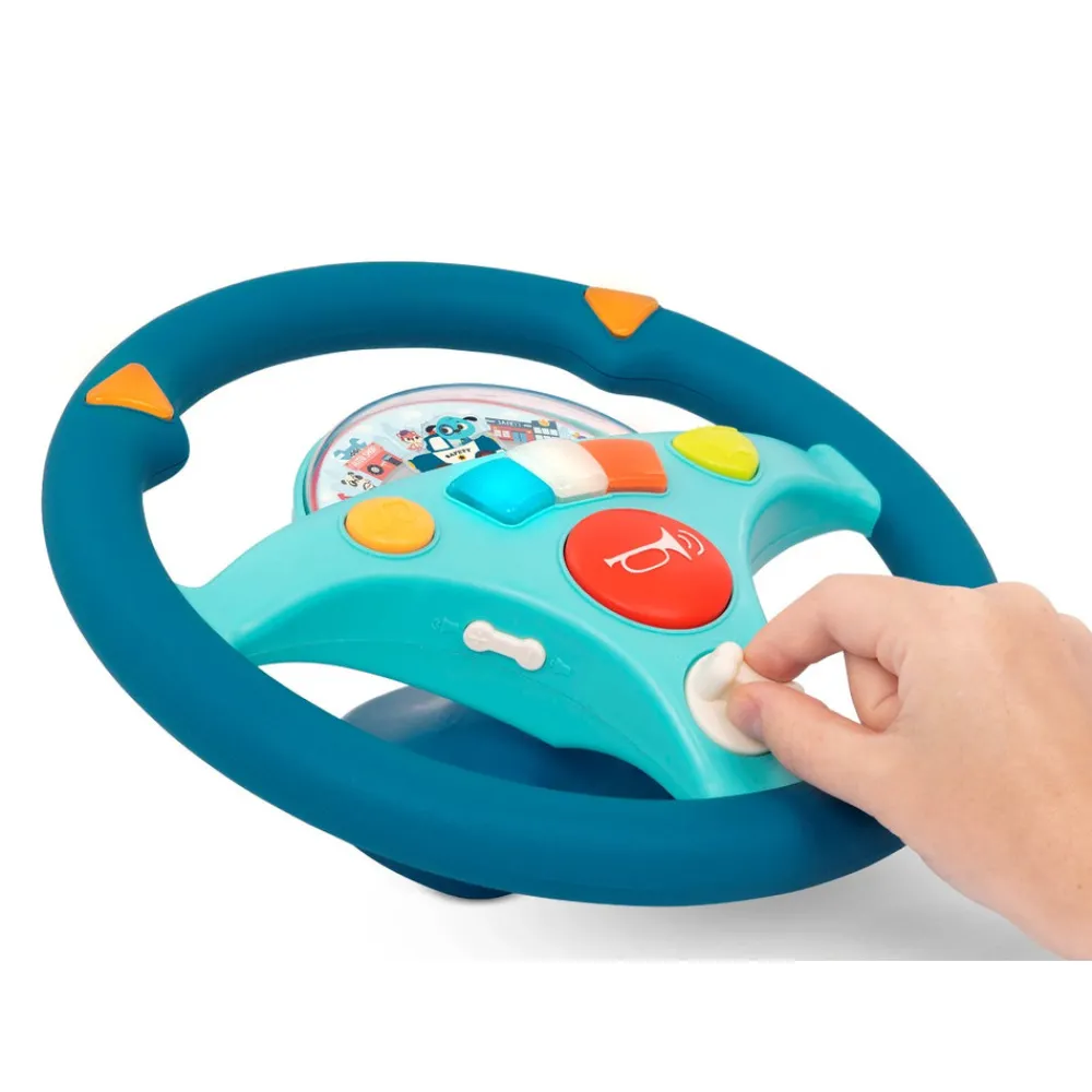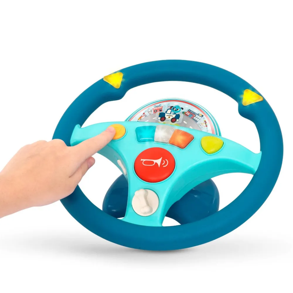 Med det sjove rat kan barnet lege, at de kører afsted i bilen. Tænd for sirenen, dyt i hornet og blink med lysene, når du skal dreje. Rattet spiller også melodier.