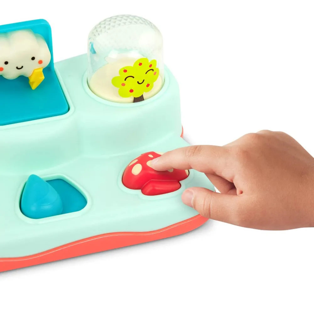 Her kan barnet øve sine motoriske færdigheder og se hvad der sker, når det trykker, skubber og drejer på knapperne.