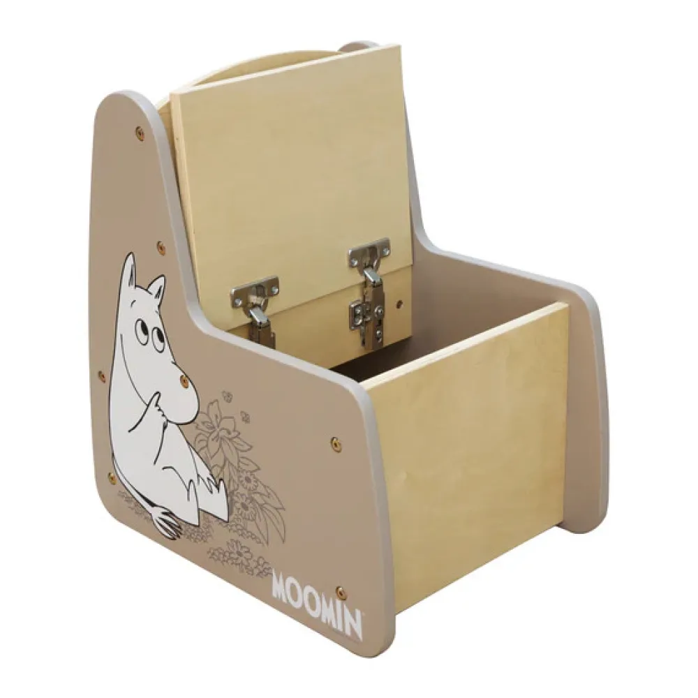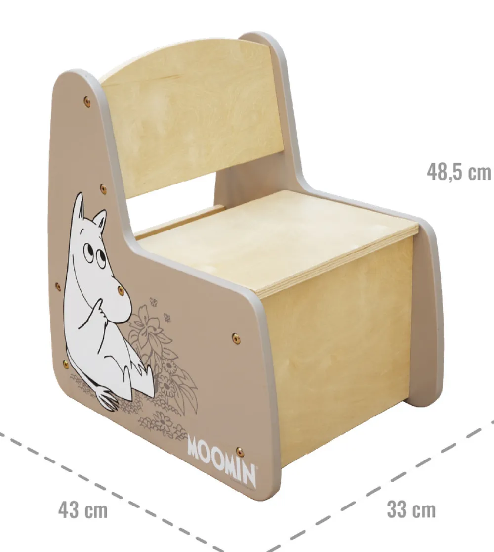 Sød Mumi Opbevaringsstol, designet til at bringe både glæde og orden ind i børns daglige rutine. Denne opbevaringsstol er perfekt til at holde bøger, legetøj og andre skatte organiseret. Stolen har en legende Mumi-figur på siden, som tilføjer et fantasifuldt touch til enhver børneværelsesindretning. De neutrale beige og trætoner blender godt ind med forskellige indretningsstile. Moomin Opbevaringsstolen er mere end bare en praktisk stol, da den også er et fremragende redskab til at fremme udviklingsfærdigheder. Ved at opmuntre børn til at organisere deres ejendele hjælper det med at udvikle ansvarlighed og selvstændighed. Stolens design gør det nemt for små hænder at laste og losse, hvilket fremmer finmotorikken og øje-hånd-koordinationen. Desuden kan den bruges i fantasifuld leg, hvilket øger kreativiteten og kognitiv vækst. Uanset om den bruges til opbevaring af bøger eller som en del af en rolleleg, er denne Mumi opbevaringsstol en vidunderlig tilføjelse til ethvert børneværelse.