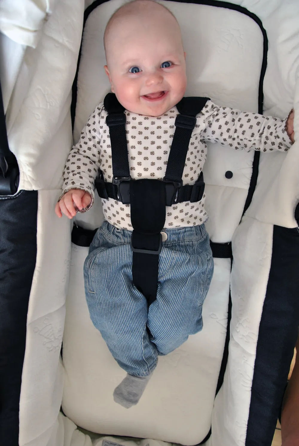 Sikker vognsele. Anvendes i barne- og kombivogne.