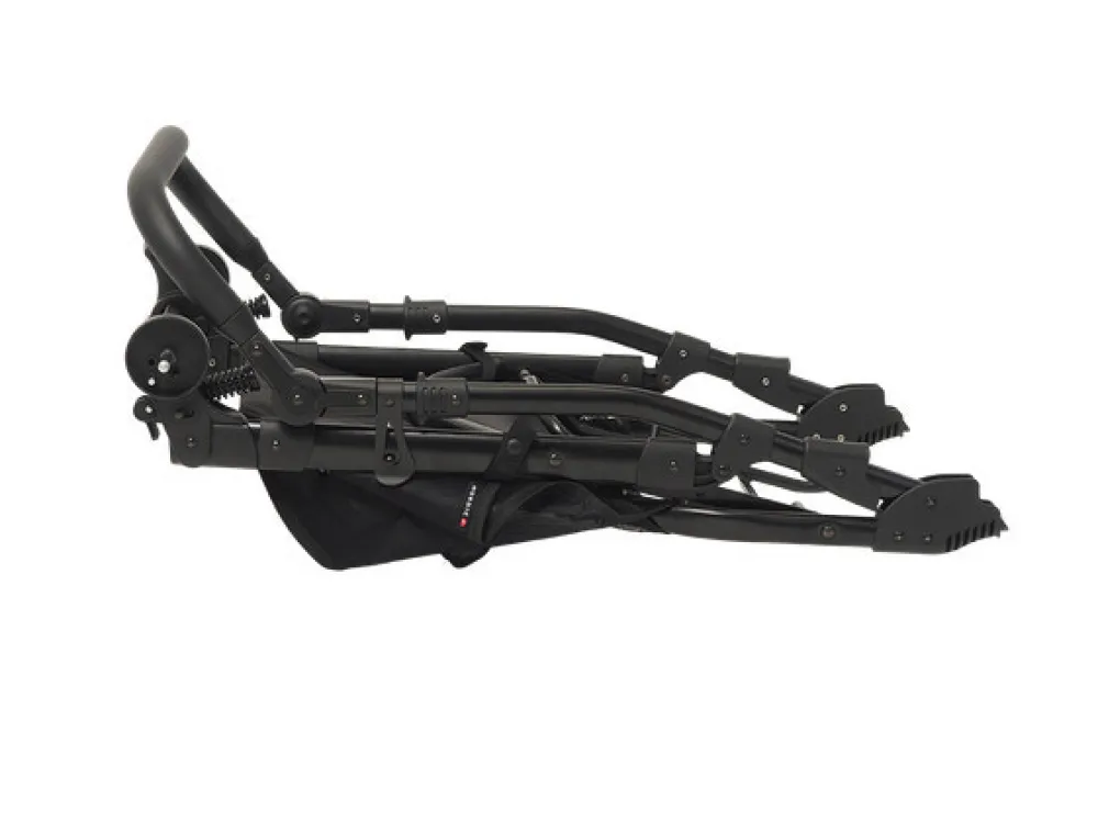 vognen stabil, men stadigvæk let. Styret kan justeres i højden (94-118 cm.), så det er nemt at tilpasse, også er der monteret eco-læder for ét godt greb. Der er en stor og praktisk indkøbskurv under vognen. Når slettet er klappet sammen måler det L: 90 H: 32 B: 61 (uden baghjul) og L: 97 H: 34 B: 64 (med baghjul). Vognen har en total vægt på 16,7 kg, testet og opfylder alle krav i DS/EN 1888:2018-1 og alle tekstiler på denne vogn er Oeko-Tex® 100 standard.
