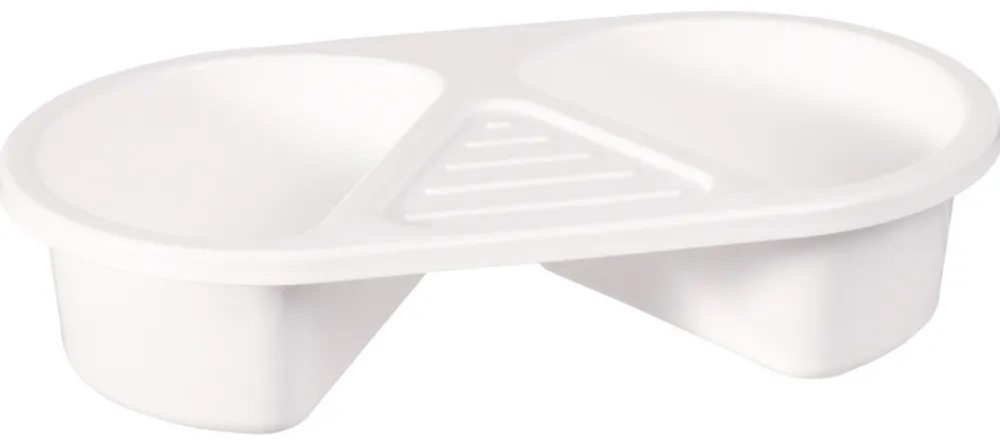 Meget praktisk todelt vaskefad til mindre afvaskninger. Den ene side kan bruges til rent vand, og den anden kan så bruges til at skylle vaskekluden i.