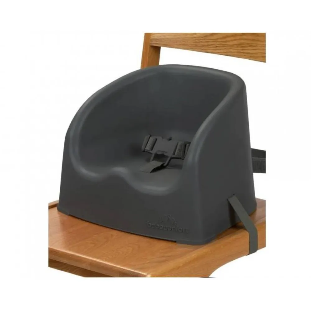 Takket være skridsikre gummidetaljer står stolen stabilt på de fleste overflader, og med to justerbare stropper fastgøres den sikkert til spisebordsstolen. En 3-punktssele holder barnet trygt på plads under hele måltidet.
