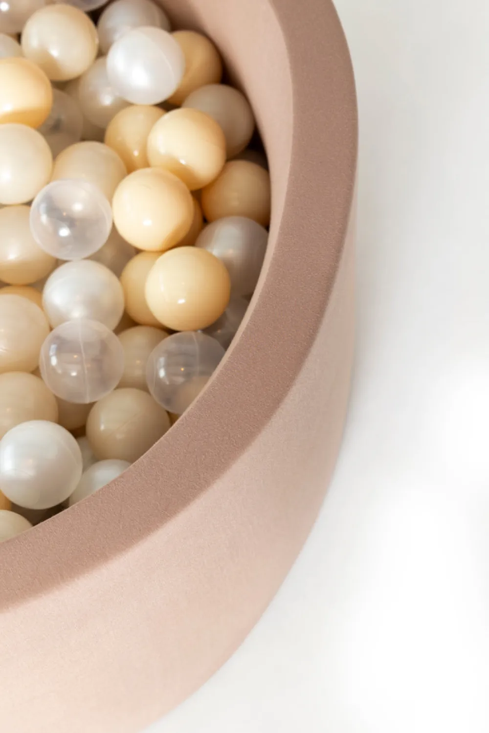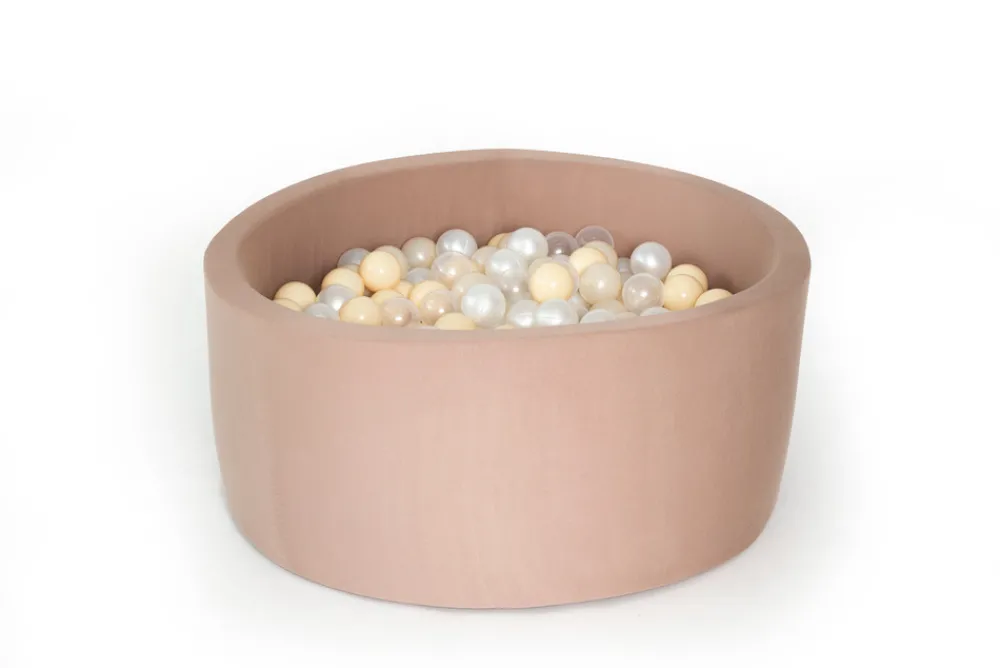 Rundt boldbassin inklusiv 200 bolde i farvemix som på foto – cafe latte som lægger op til mange timers sjov og stimulerende leg. Boldbassinet har masser af sjove legmuligheder og er ideelt for at træne balance og fornemmelsen for egen krop. Det flotte enkle design og farve passer nemt ind i mange forskellige hjem og rum.