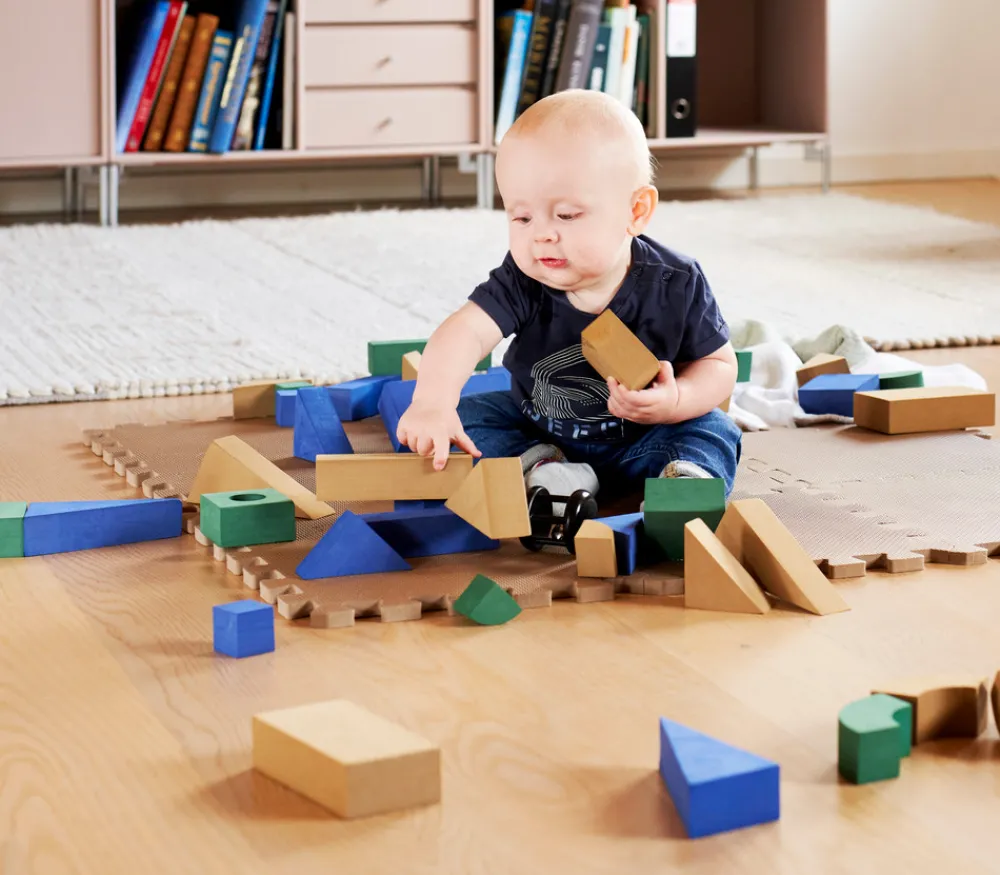 Blødt, kraftigt og isolerende multifunktions skumlegegulv. 100% fri for phthalater, PVC, formaldehyd og formamid. Opfylder alle gældende krav. Skumgulvet måler samlet 90 x 90cm og består af 9 brikker på 30 x 30 x 1,4 cm.
