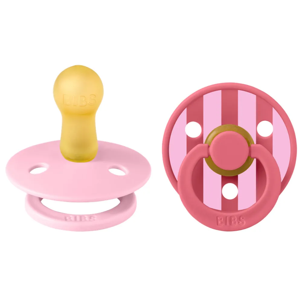 BIBS Colour er den originale BIBS-sut og har været på markedet i over 40 år. Den har det karakteristiske runde BIBS-skjold med tre udluftningshuller og en rund BIBS-indgraveret ring.