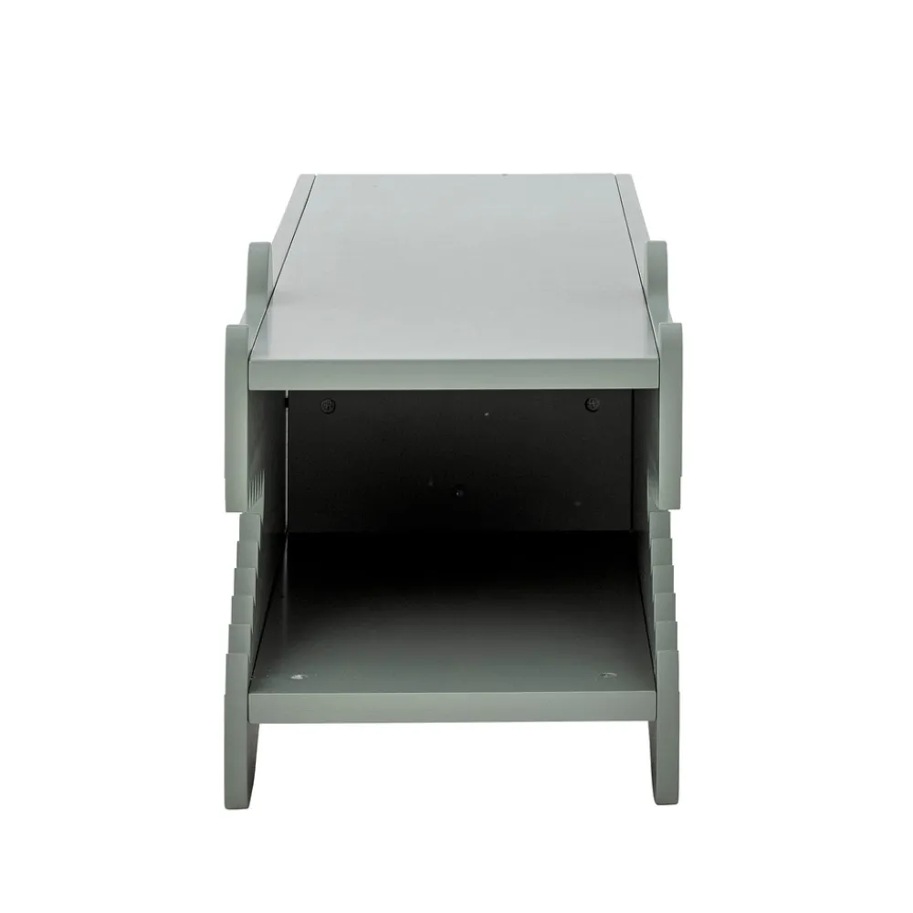 Arnie Bænken fra Bloomingville MINI er den perfekte tilføjelse til børneværelset! Formet som en sød alligator i en smuk støvet grøn farve, er denne bænk både en sjov siddeplads og et flot møbel. Med åbninger i begge ender bliver det nemt for børnene at opbevare deres yndlingsbøger, legetøj eller bamser, der kan gemmes sikkert inde i bænken. L: 100 x H: 30 x B: 34 cm. Maks vægt 50 kg.