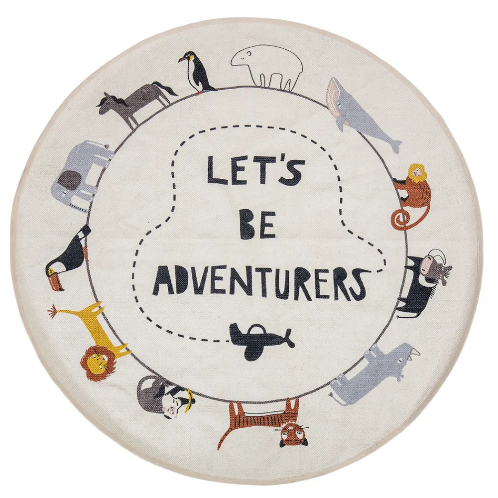 Dette runde gulvtæppe rummer både hygge og læring i et. Det bløde bomuld inviterer til leg på gulvet, og de mange fine dyr der indkranser tæppet, lader fantasien få frit løb.