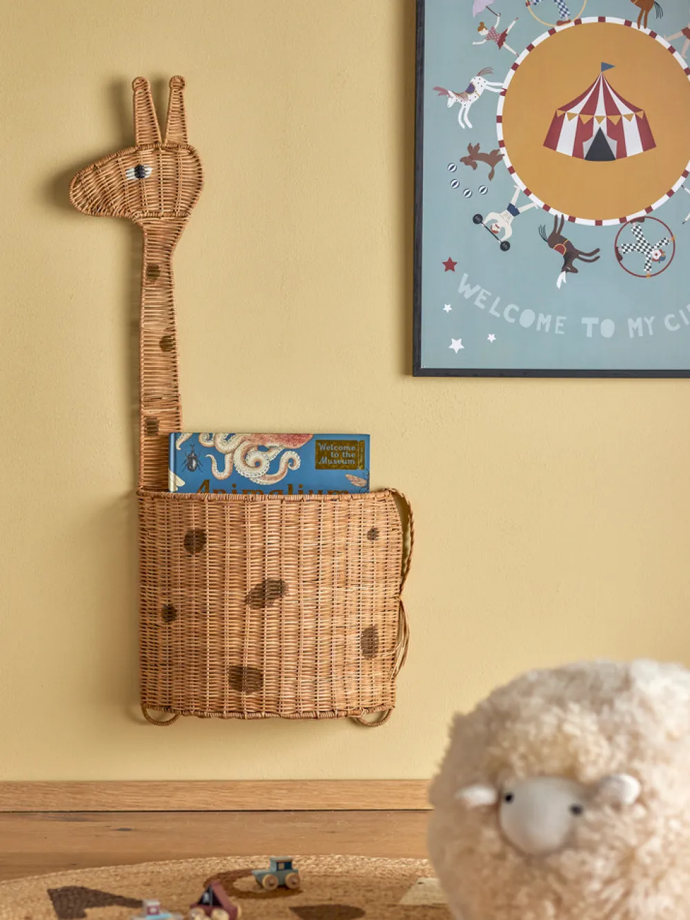 Philine Kurven til væg fra Bloomingville MINI forestiller en sød giraf. Denne unikke vægkurv giver børneværelset et særligt touch og er ideel til opbevaring af mindre bamser eller andre små skatte på børneværelset. Med sit hyggelige design bliver kurven et dekorativt og praktisk element. Farven kan variere alt efter hvilken sæson materialet er høstet i.