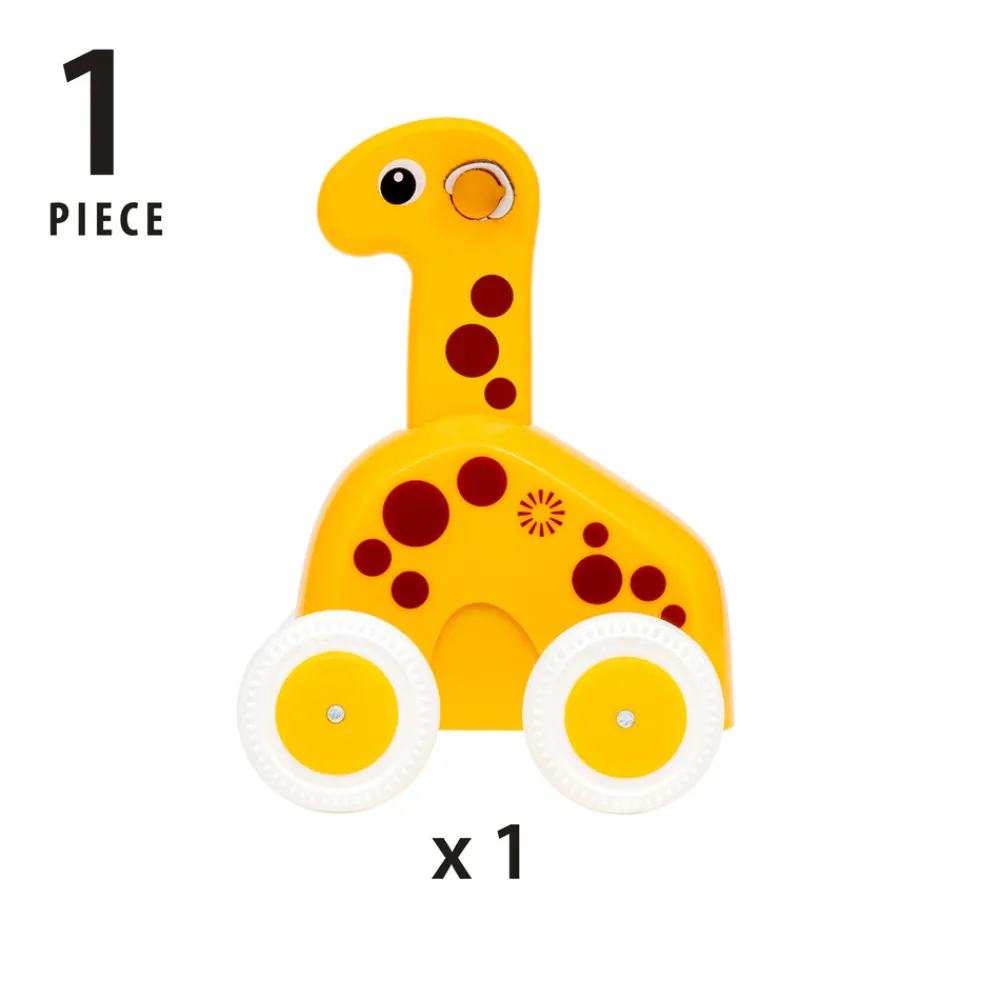 Gør dig klar til jagten med 30229 Push & Go Giraf fra Brio. Denne søde giraf er den perfekte ven til små børn, der er ved at lære at kravle og gå. Tryk på hovedet, og legetøjet til små børn går af sted med god hastighed! Alderstilpasset design med enkel mekanik, som børn på 1 år nemt kan forstå. Fremstillet i en kombination af FSC-certificeret europæisk bøgetræ, kvalitetsplastik og filtmateriale. Dette legetøj vil med sikkerhed få alle til at smile. Fra 12 måneder.
