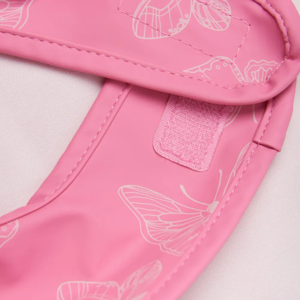 Lang hagesmæk i recycled polyester. Hagesmækken lukkes med velcro bagpå. Med all-over-print.