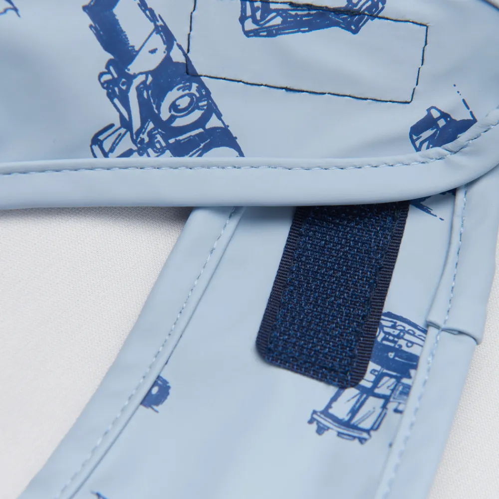 Lang hagesmæk i recycled polyester. Hagesmækken lukkes med velcro bagpå. Med all-over-print.
