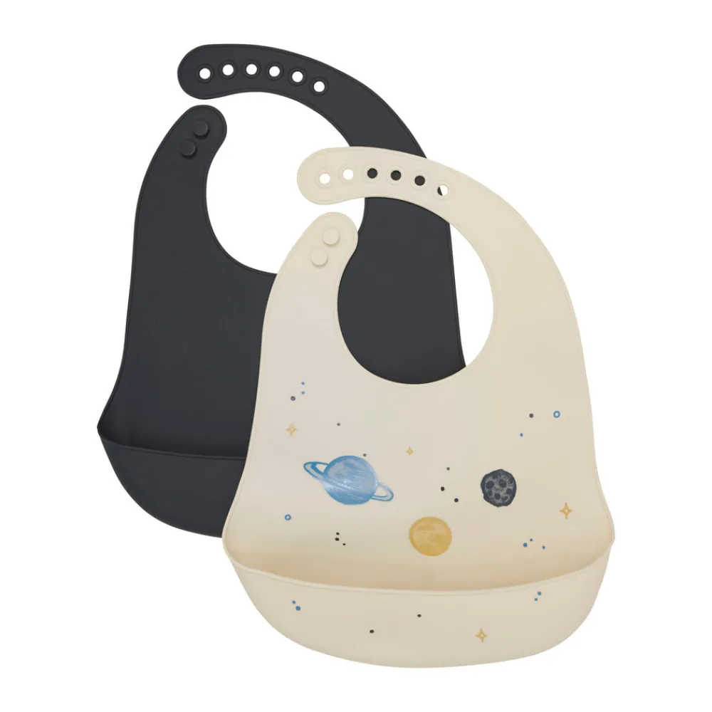 Spisesmæk i silikone. Praktisk hagesmæk der er blød og nem at bruge til baby og børn. Med praktisk opsamler der gør spisetiden nemmere.