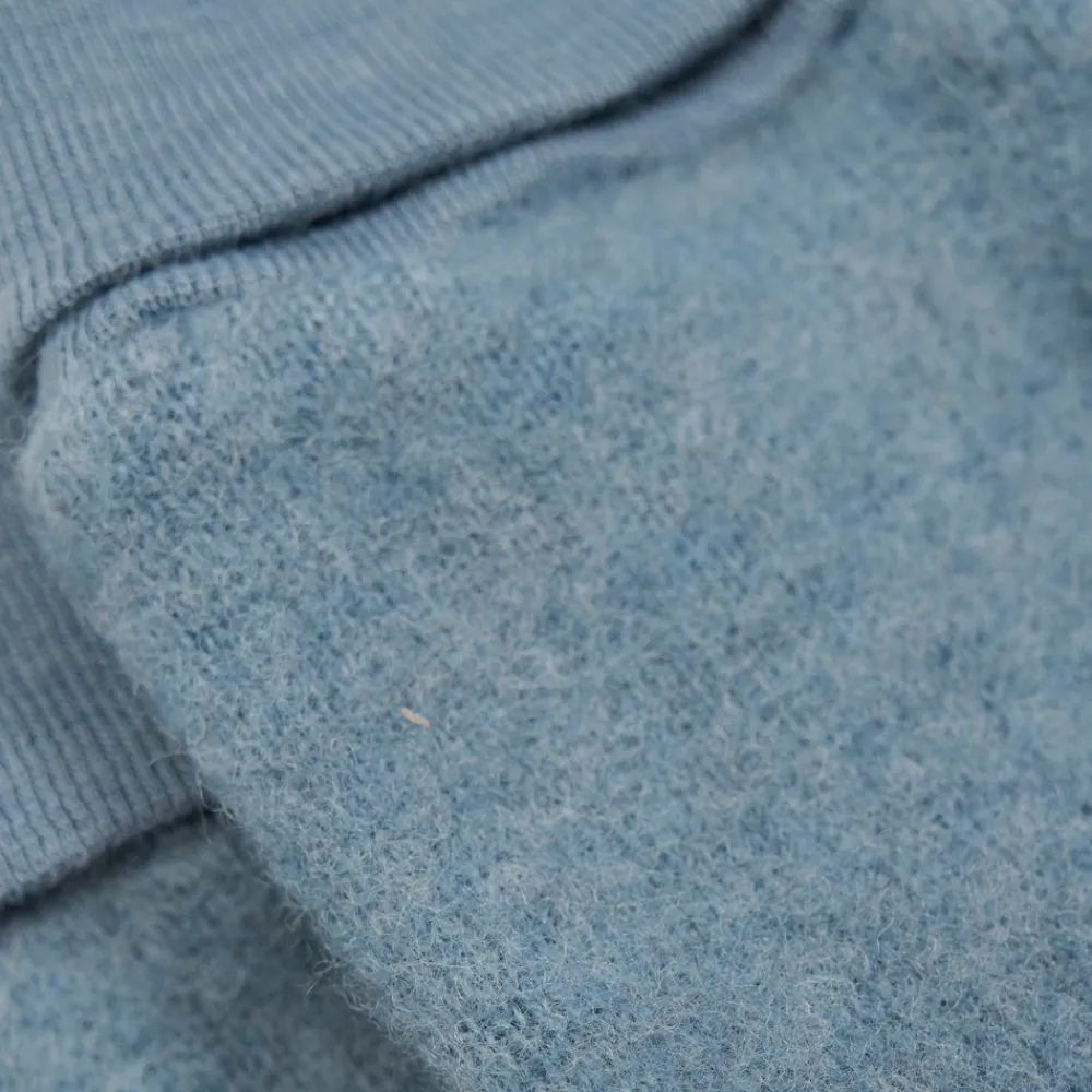Merinould er naturligt selvrensende og bør kun vaskes, når det er nødvendigt. Brug et skånsomt uldvaskemiddel og undgå skyllemiddel. Vask på skånsomt uld program med lav centrifugering og vrangen udad. Ved håndvask anvendes lunkent vand – undgå at vride, men pres forsigtigt vandet ud med et håndklæde. Tør fladt på et håndklæde – ikke på radiator eller i tørretumbler.
