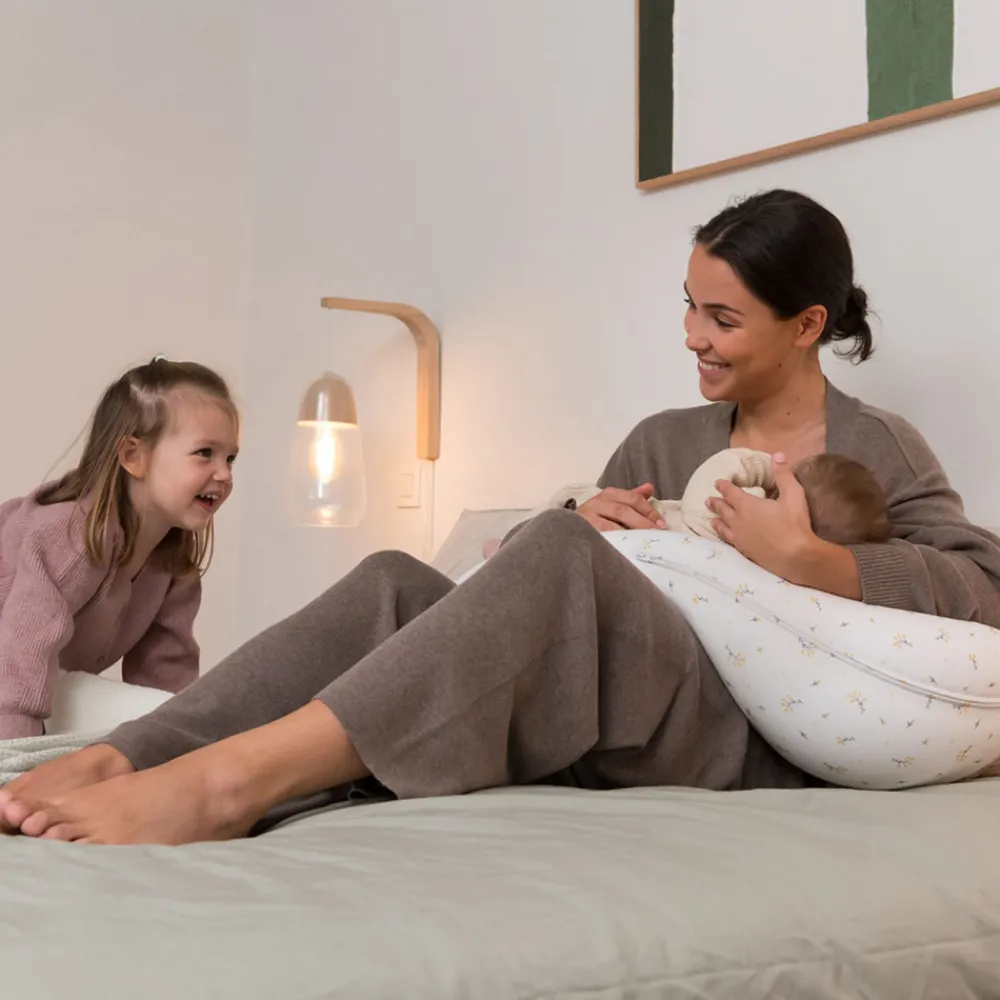 Multifunktion; graviditets- og ammepude, ligge- og siddestøtte til barnet