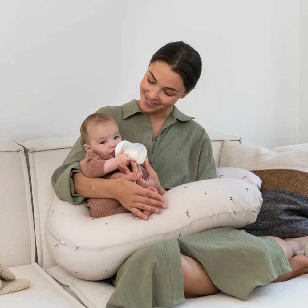 Multifunktion; graviditets- og ammepude, ligge- og siddestøtte til barnet Produktstørrelse: 180 cm (ydre omkreds)