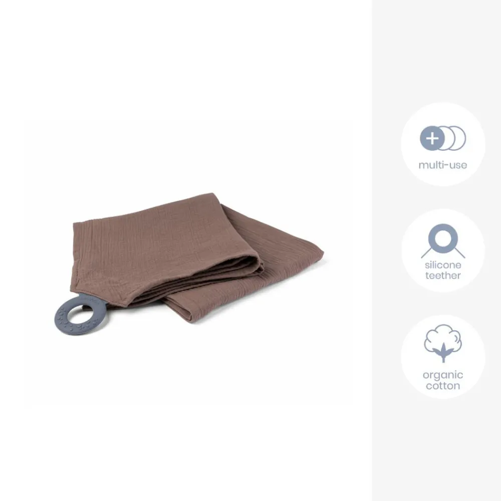 Doomoo Ammesvøb med Bidering er en unik ammeklud i muslin med flere smarte funktioner. Amme-/Nussekluden er lavet af ultrablød quiltet økologisk bomuld. Man fastgør Amme-/Nussekluden let rundt om den voksnes hals takket være silikone-ringen, som også fungerer som en bidering for de mindste for at lindre kløende tandkød under tandfrembrud.