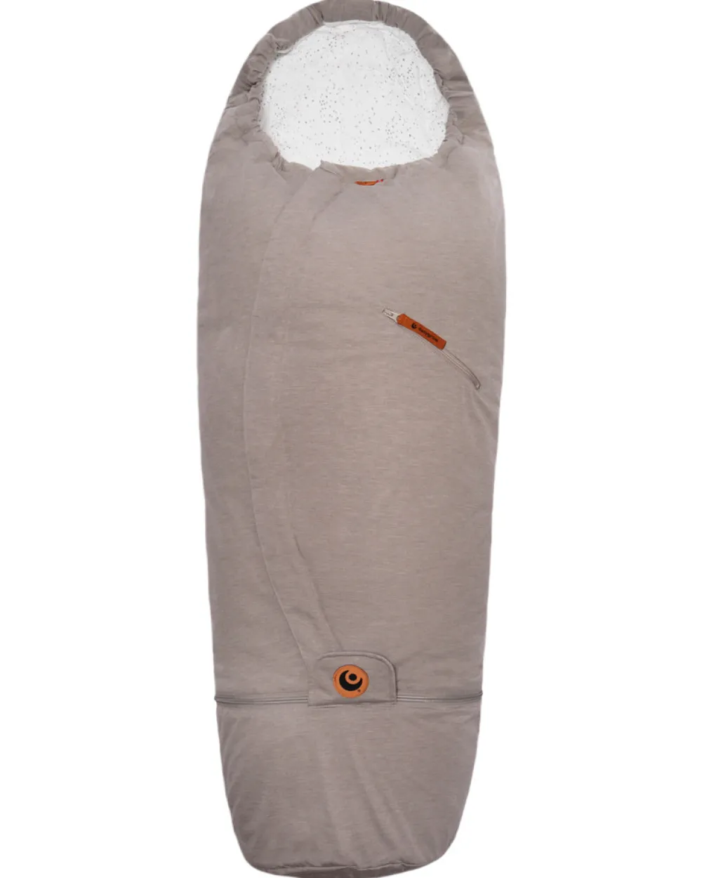 Køreposen er lavet af genbrugsmaterialer og økologisk viskose af bambus. Posen kan forlænges og har således en lang levetid.