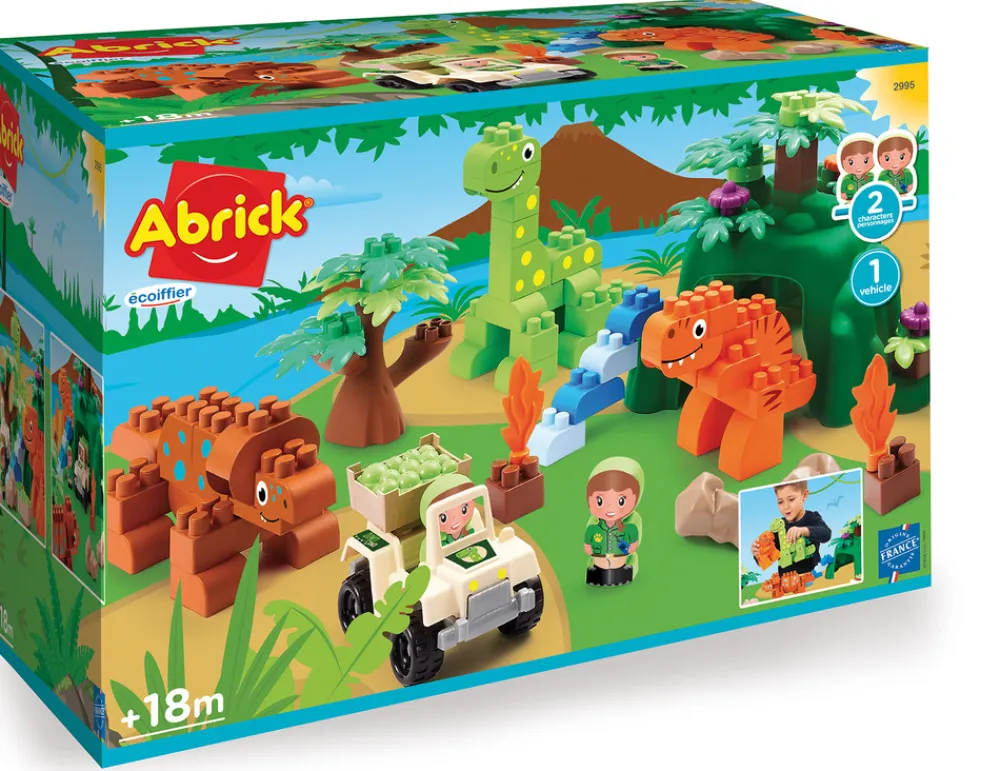 Denne pakke indeholder blandt andet tre store dinosaurer, der både kan leges og bygges med, en ø, jeep-køretøj og 2 figurer. 87 dele.