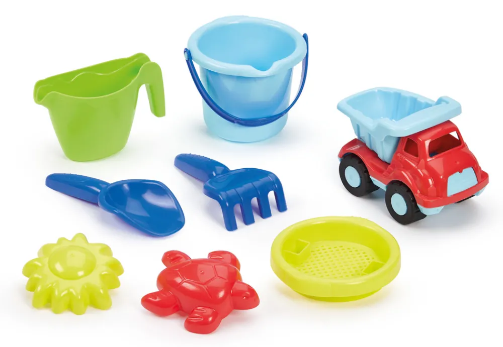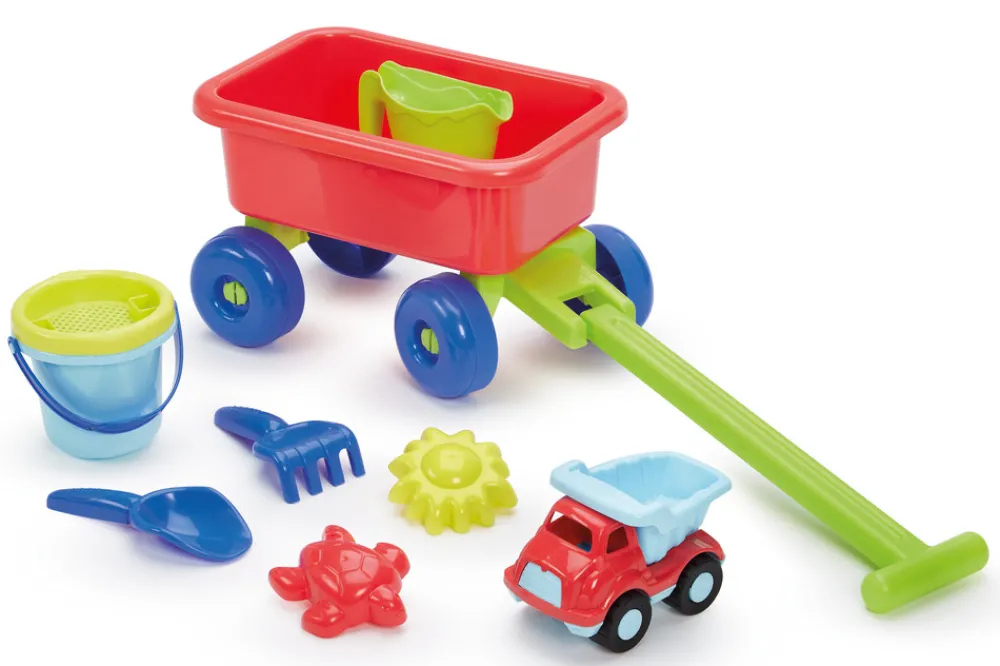 Strandvogn med forskelligt tilbehør der byder på mange timers sjov og leg på stranden eller i sandkassen.