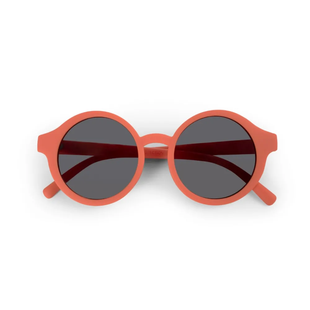 Fremstillet i genanvendt plast fra havet og med en fantastisk pasform er denne solbrille blide mod barnets hud og sidder blødt på den lille næse. Det lækre, lette oversized design fås i flere sommerlige yndlingsfarver, som passer til smukke sommerfugle og kække krabber. Det fleksible materiales holdbarhed er i top – selv når nysgerrige barnehænder udforsker det. Samtidig yder kategori 3 kvalitetsglas med UV400-filter 100 % UV-beskyttelse til det nysgerrige barneblik.