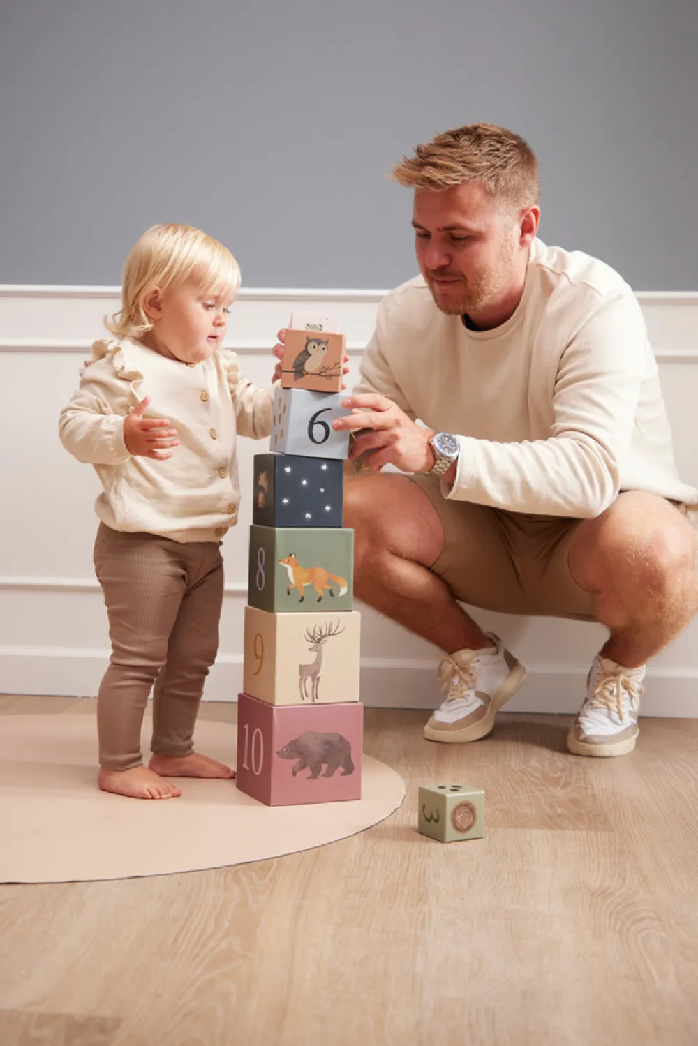 Lad dit barn at tælle til ti og lær om de nordiske dyr på samme tid. Stableklodser er lærerige og sjove og udvikler både fin- og grovmotorik, hånd-øje-koordination og problemløsningsevner. De farverige håndtegnede illustrationer vil helt sikkert glæde og skabe nysgerrighed omkring de nordiske dyr og naturen.