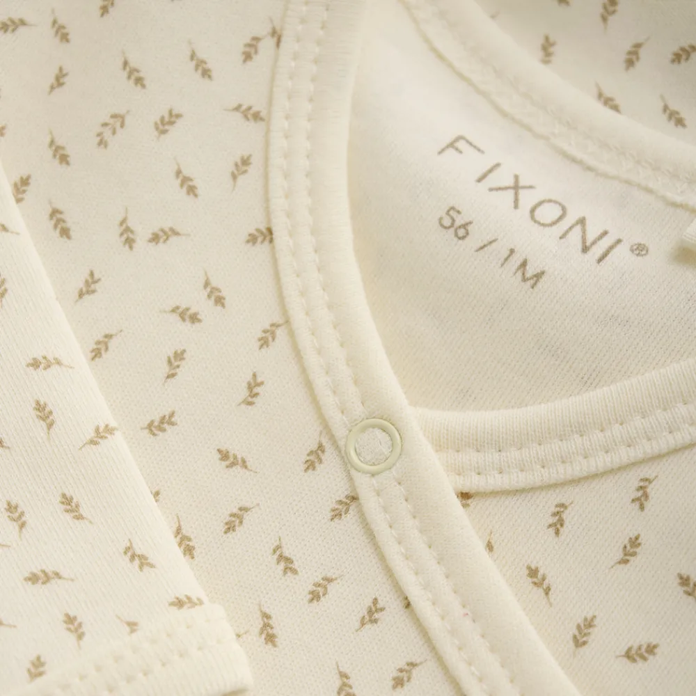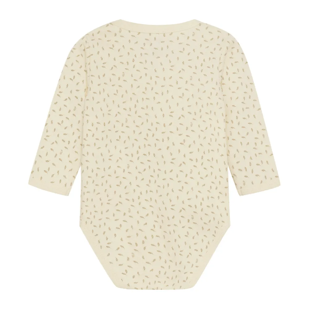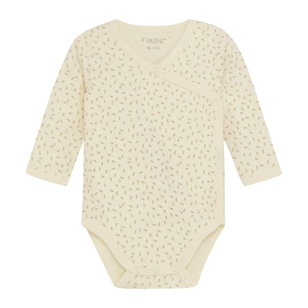 Langærmet wrap body med all-over print. Nem at tage af og på. Perfekt til babyer.