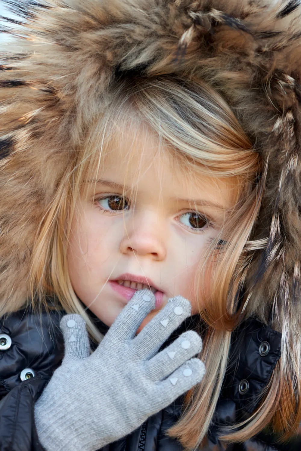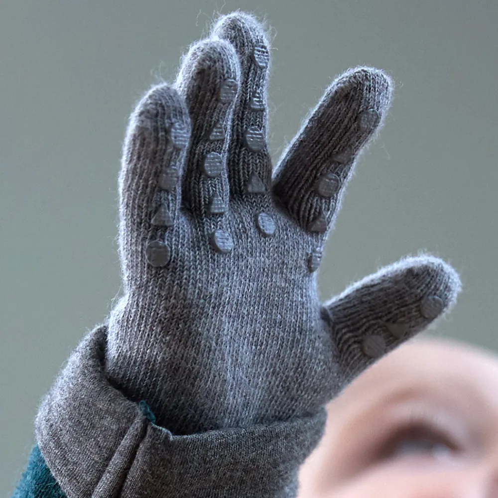 GoBabyGo fingervanter med gummidutter på indersiden af fingrene som gør det lettere at lege, gribe and holde fast på ting når barnet leger udendørs. Slip fingrene løs og styrk barnets finmotorik.