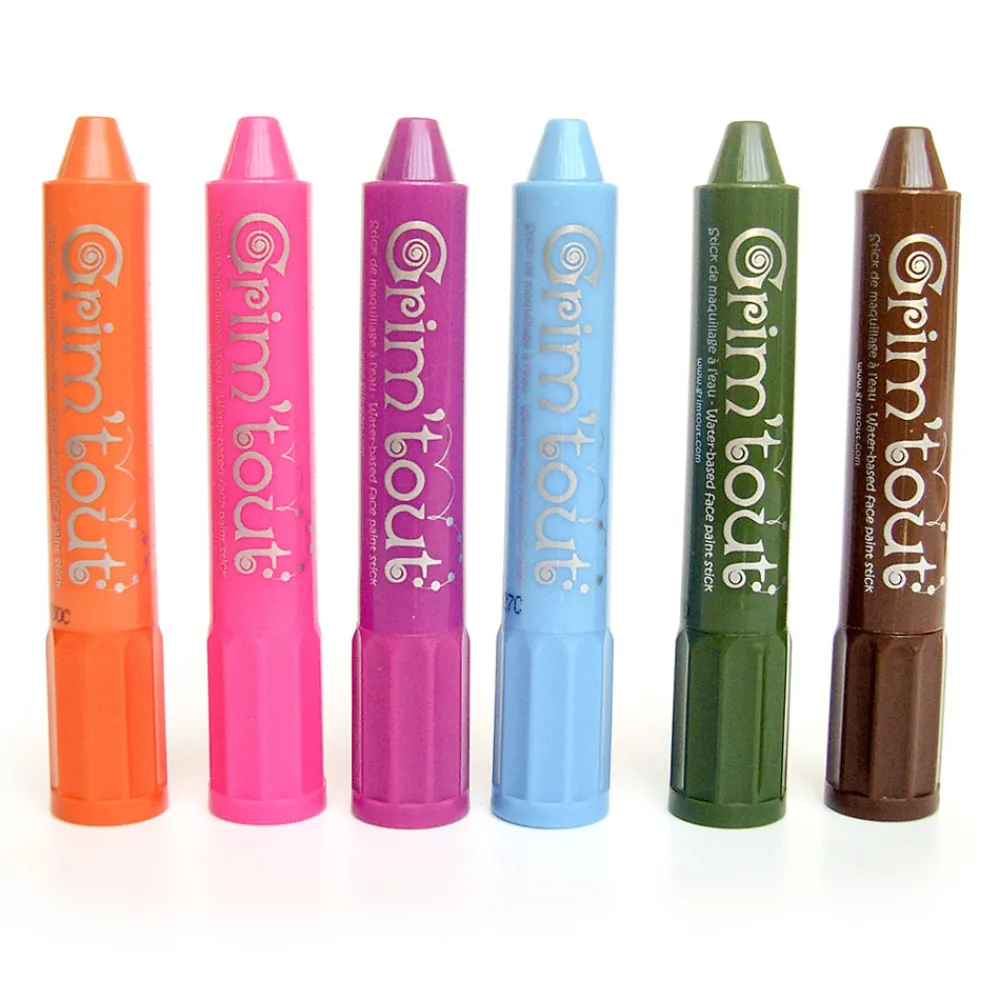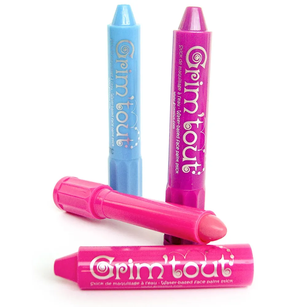 Grimsticks fra Grimtout er lette at gå til selv for små børn takket være deres twist system der fungerer ligesom en læbestift. De meget bløde sticks forbliver rene i emballagen, og kan let vaskes af ansigt og tøj med lunt vand og en lille smule sæbe. Grimsticks er produceret i Europa, og er helt fri for parabener. De er uden duft og fedter ikke. Børnene kan have det sjovt, og samtidigt minimere risikoen for allergi. Grimtout produkter er i fuld overensstemmelse med de kosmetik-standarder og er CE-certificeret.