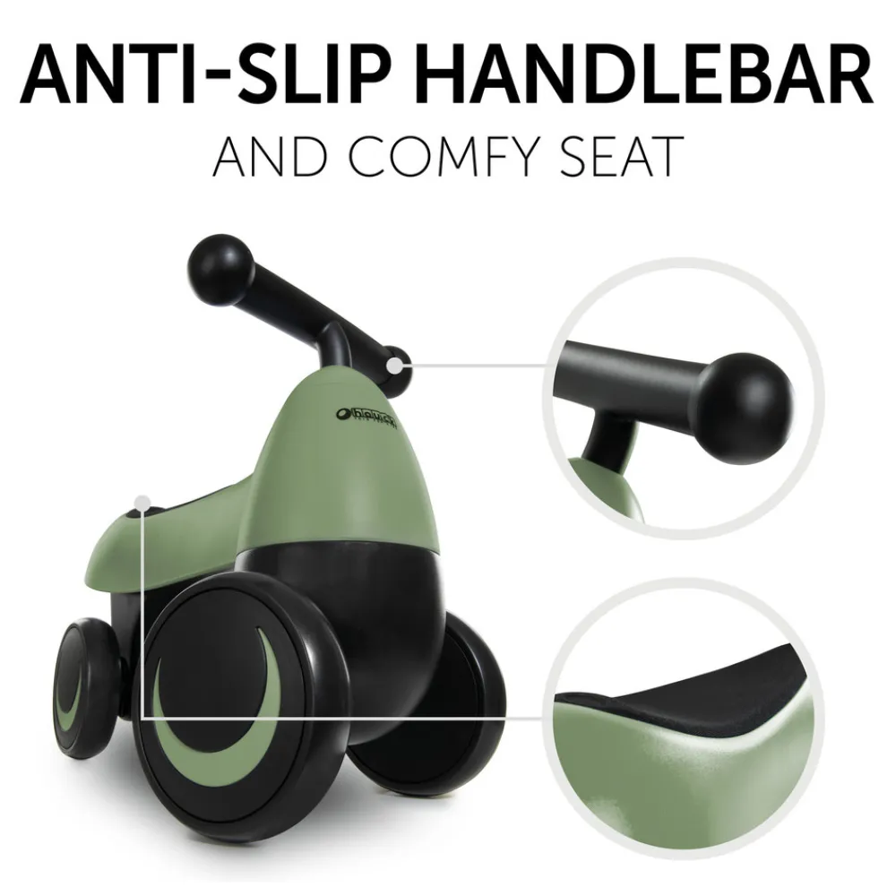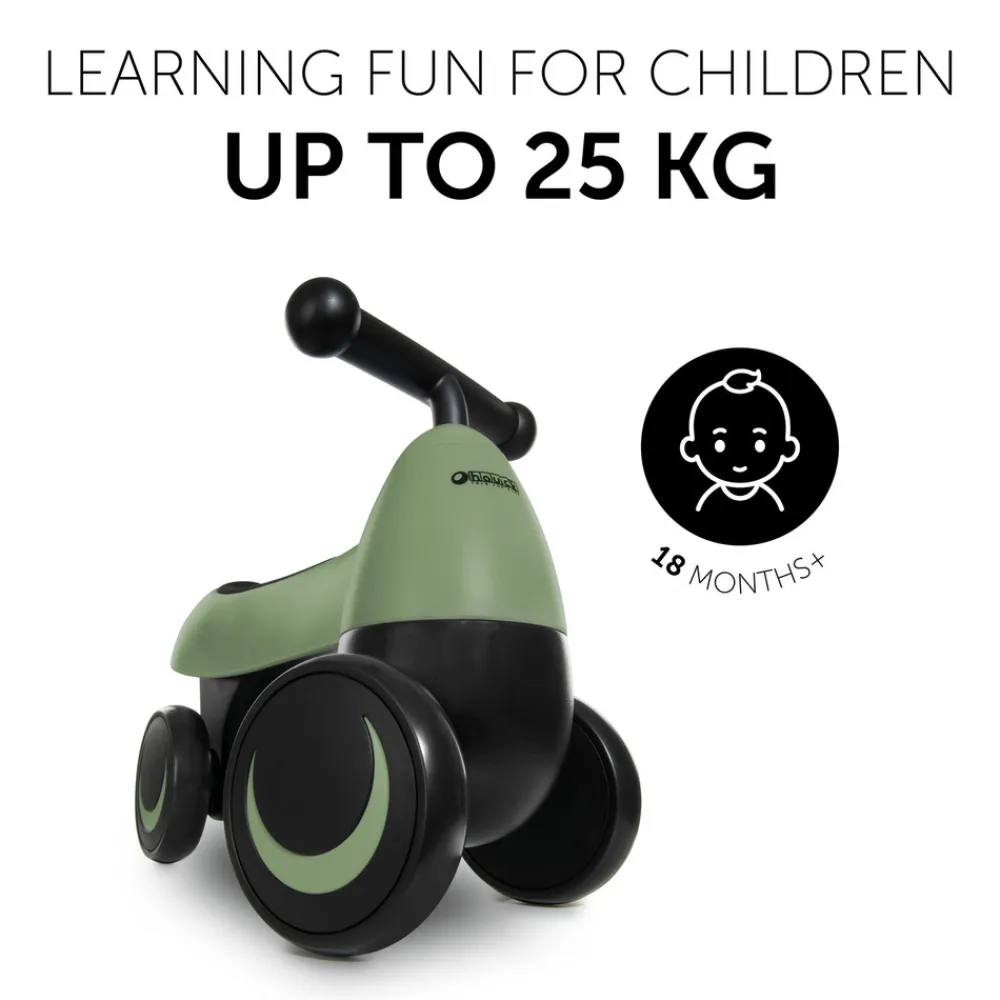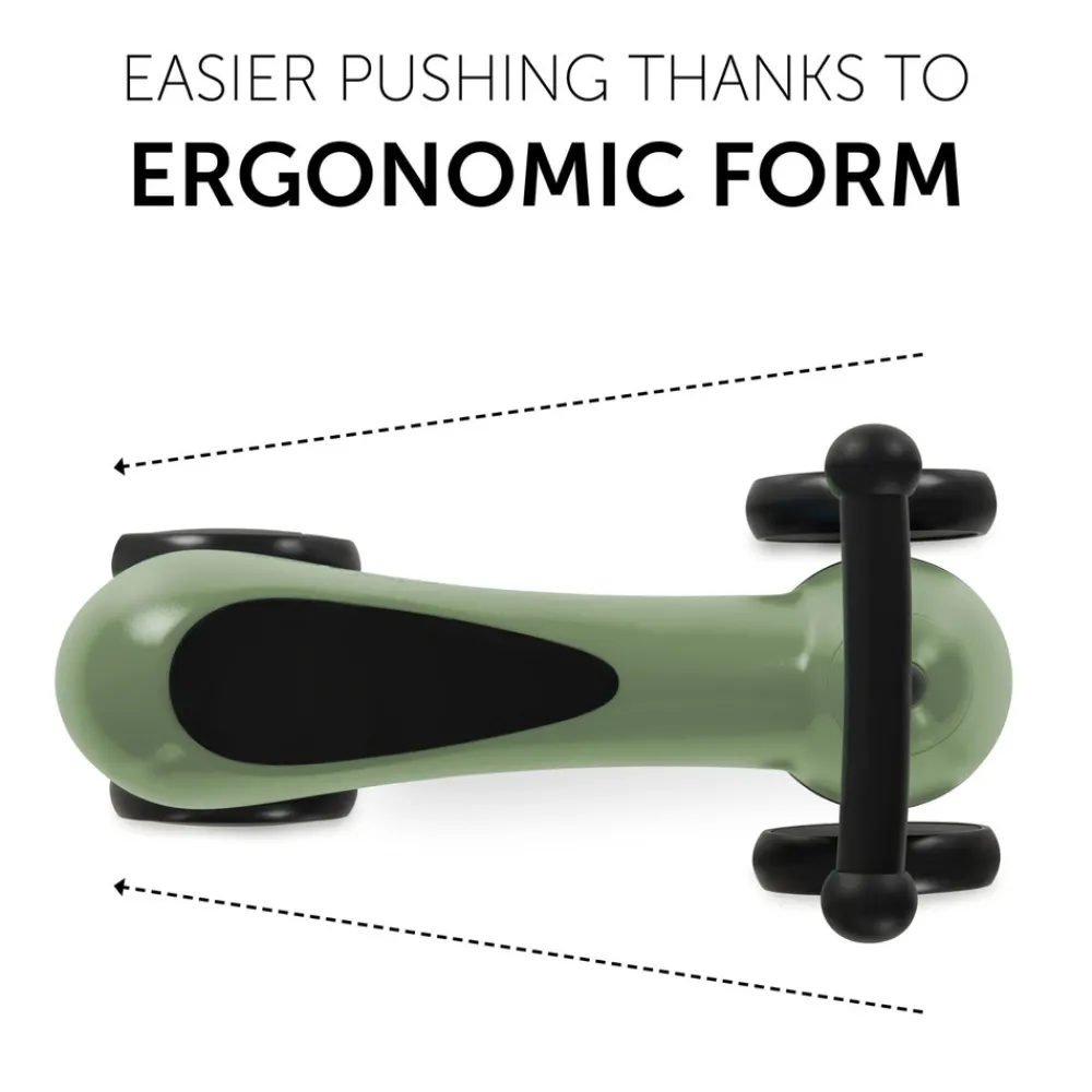 1st Ride Four er det perfekte ride-on legetøj til alle unge racerkørere. Fra 18 måneder og frem kan din lille opdage deres omgivelser og køre gennem dit hjem på denne dejlige 4-hjulede ride-on. Den ergonomiske form på ride-on understøtter skubbebevægelserne og forhindrer de små ben i at røre baghjulene. Dit barn kan træne deres smidighed, motorik og koordination, samtidig med at det har en masse køresjov. Takket være dens stabile konstruktion er 1st Ride Four velegnet op til 25 kg, hvilket garanterer lang brugbarhed. De ekstra støjsvage hjul på push-køretøjet er lavet af holdbar EVA-plast, hvilket gør dem velegnede til ethvert terræn indendørs eller udendørs. Siddeoverfladen er blødt polstret og giver god komfort under kørslen. Rammens lave tyngdepunkt gør køreturen stabil, mens de skridsikre håndtag og styrevinklen giver bedre sikkerhed.