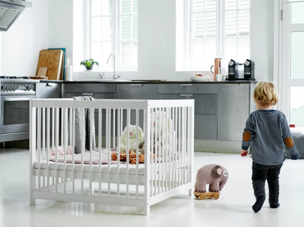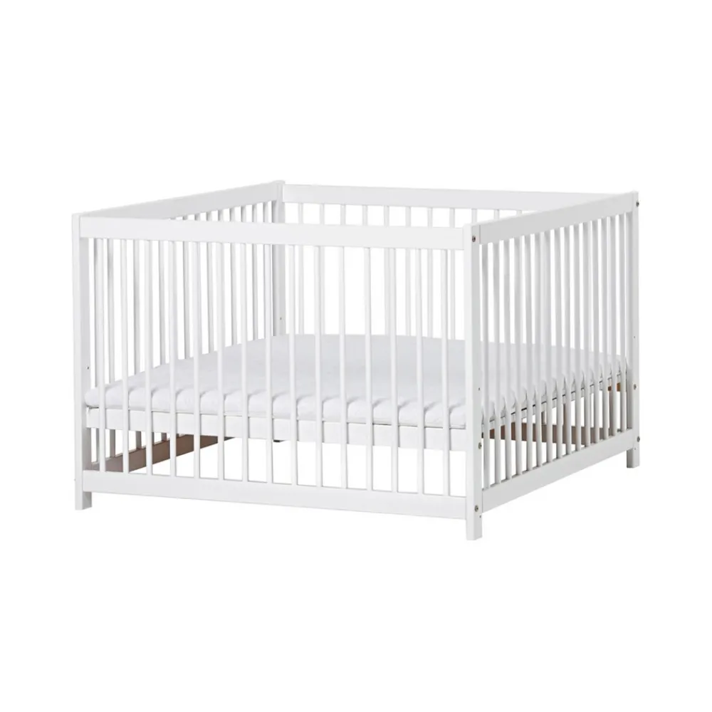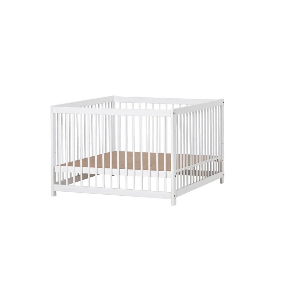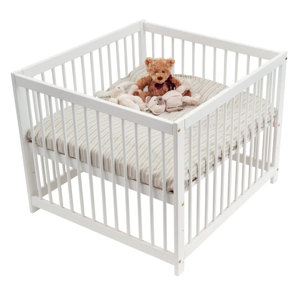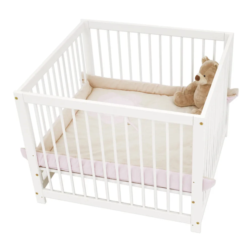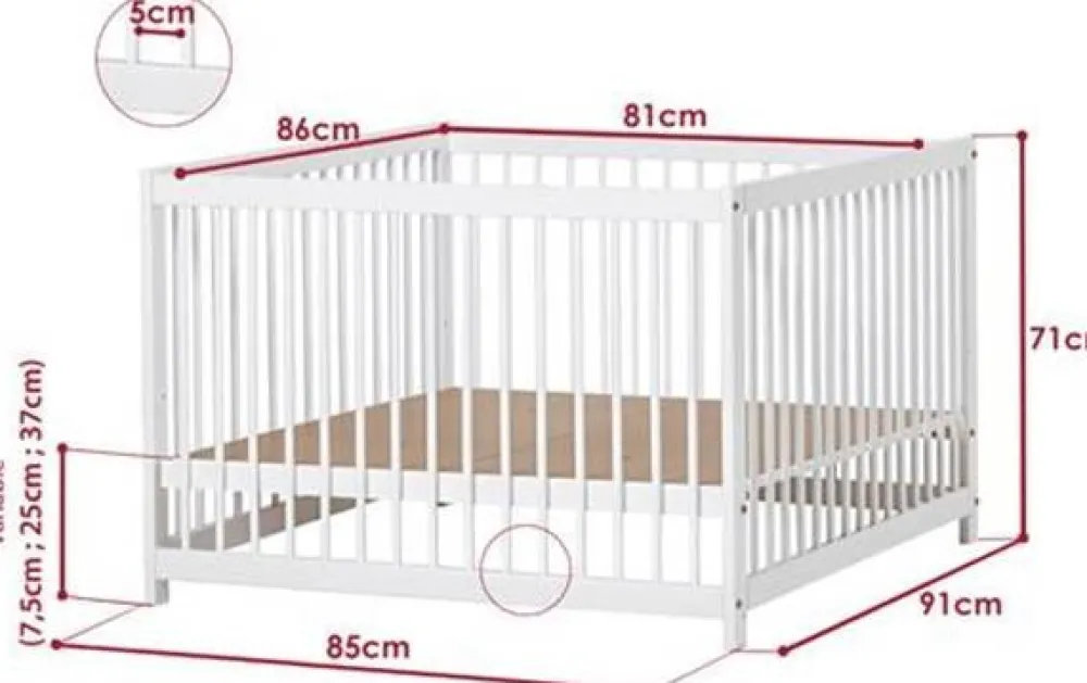 IDA-MARIE kravlegården fra Hoppekids er en smart og praktisk kravlegård. Den lille størrelse på 91×85 cm gør det nemt at finde plads til kravlegården de fleste steder. Brug den i køkkenet, stuen eller andre rum. Kravlegården er et sikkert og trygt sted, hvor baby kan få en pause fra kæledyr, større søskende, eller hvis du har brug for at kunne lægge baby fra dig i en periode. Kravlegården har et roligt og indbydende design. De runde tremmer gør det let for barnet at holde i og kan være en god støtte, når der skal læres at stå og gå. Højden på kravlegårdens bund kan indstilles i tre forskellige højder. Udover at sikre din ryg mod dumme løft, så kan det også hjælpe med at holde kravlegården sikker for barnet. Brug den højeste højde, når barnet er helt lille, og ryg bunden ned, i takt med at dit barn vokser.