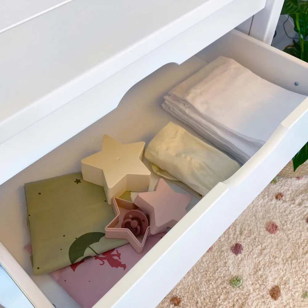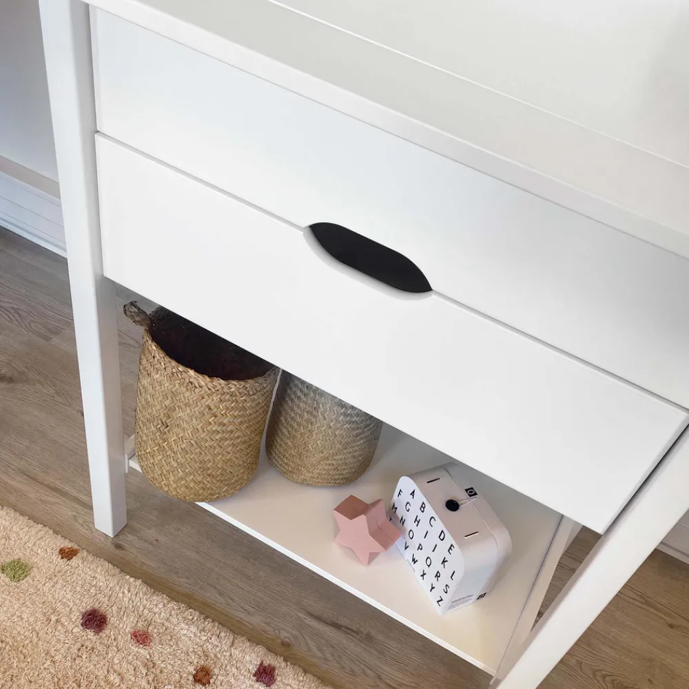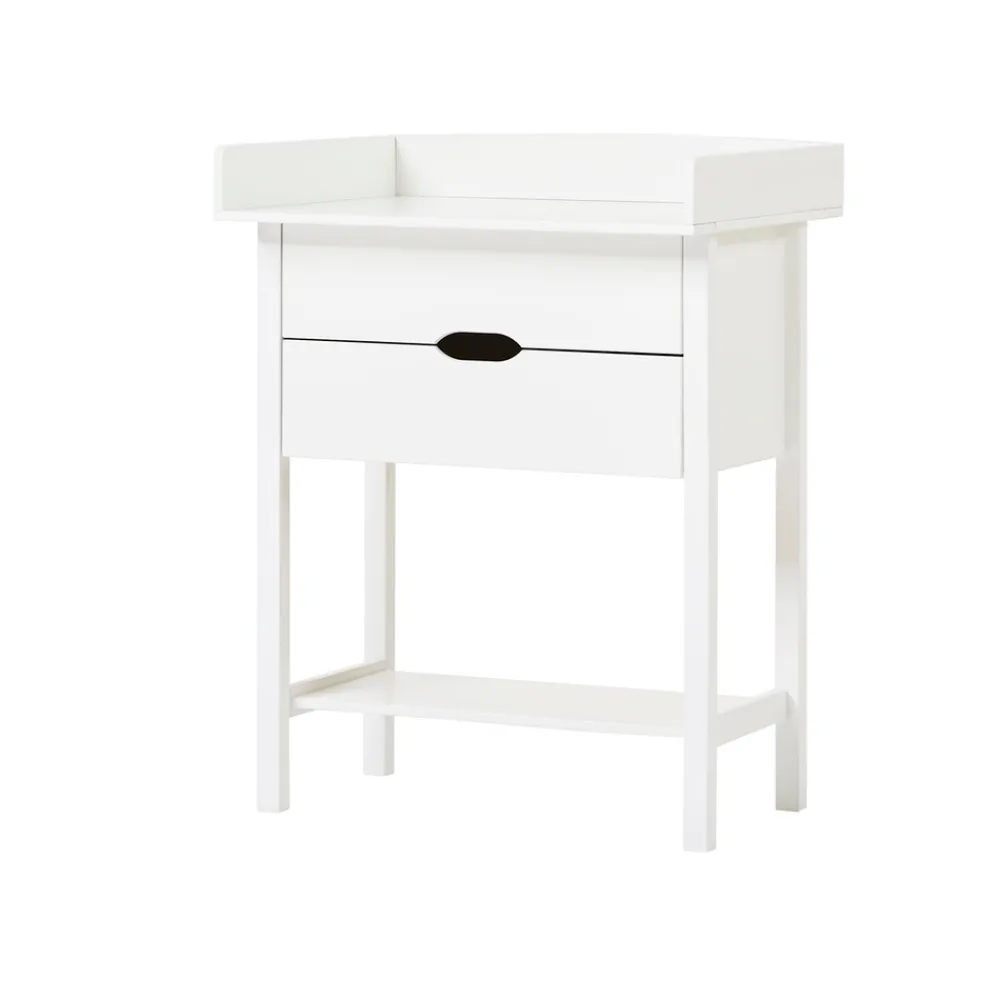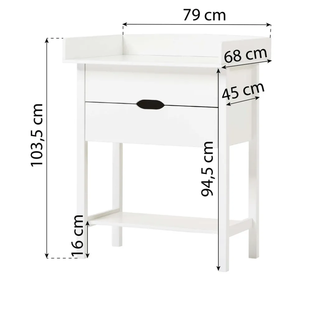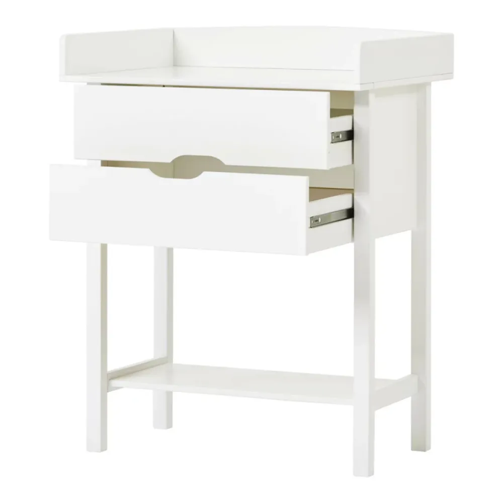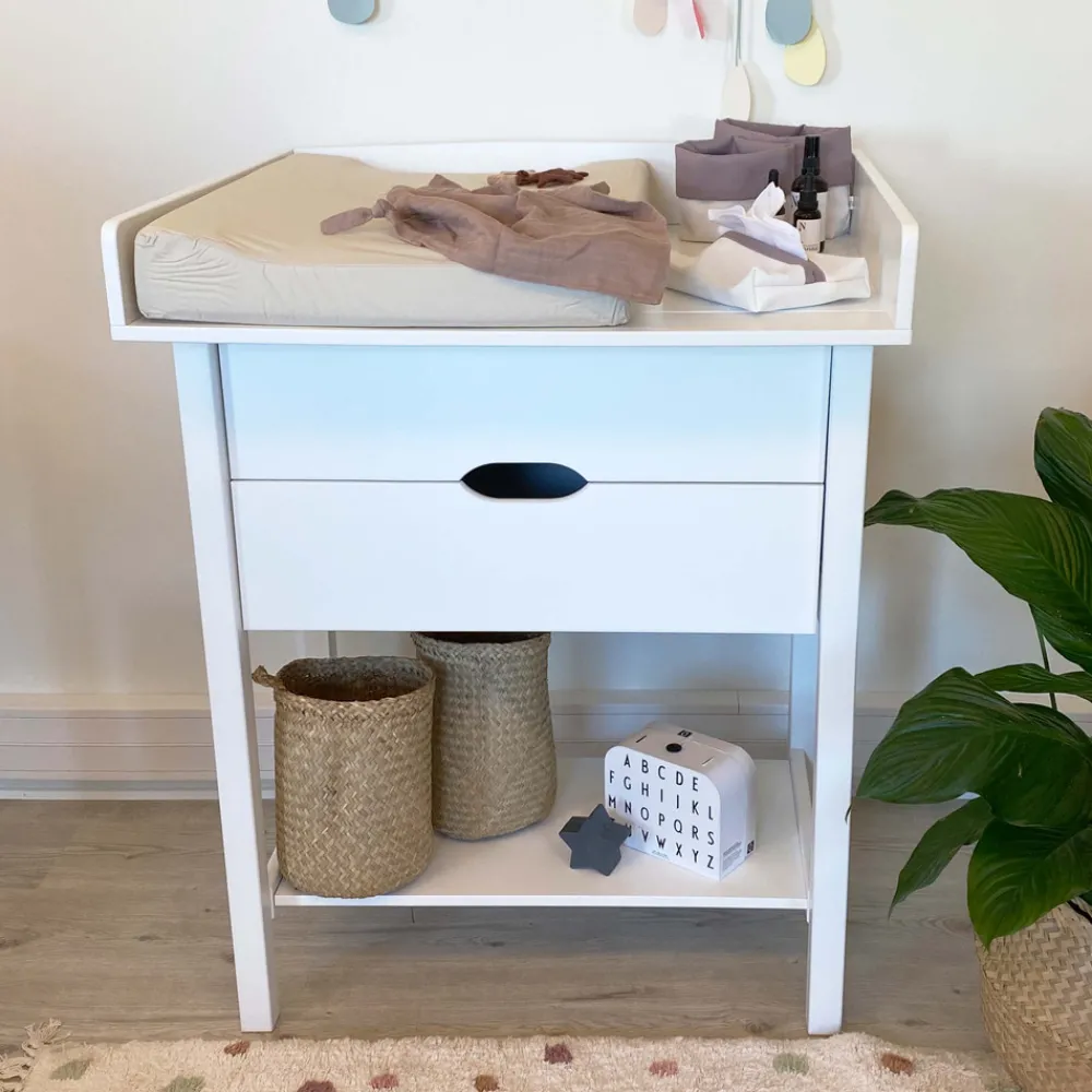 Isabella har med sine to skuffer og store hylde fleksible og moderne indretningsmuligheder. Den aftagelige pusletop gør det nemt at omdanne Isabella til en kommode, og dermed forlænge brugstiden. De store skuffer og den brede hylde giver massere af muligheder for opbevaring, så du altid har det vigtigste lige ved hånden. Pusletoppen fæstnes på bagsiden af kommoden og efterlader derfor ikke skruemærker og lign., når pusletoppen fjernes igen.