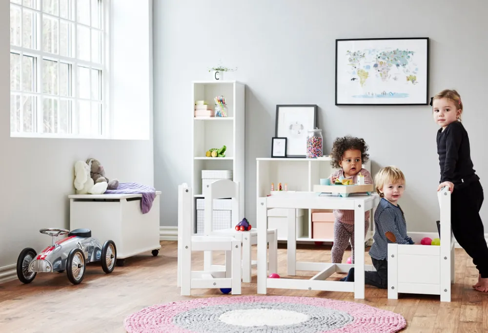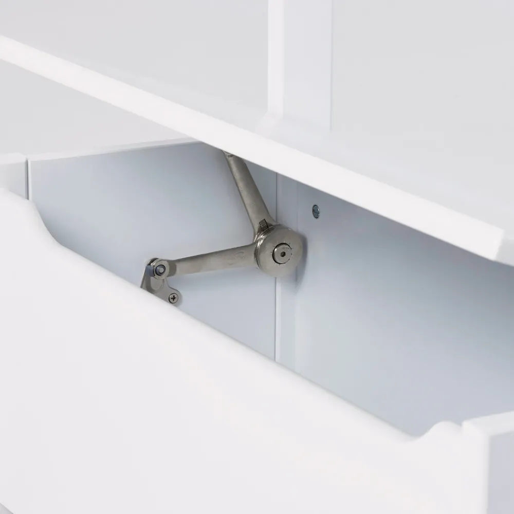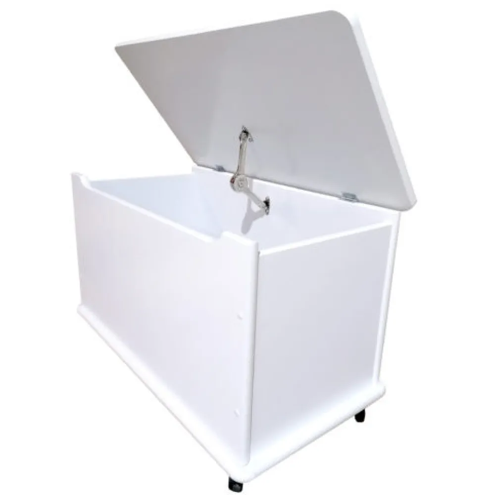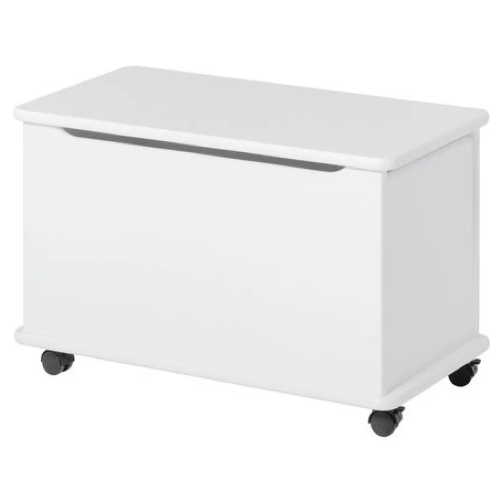 Kisten fra Hoppekids er smart og praktisk opbevaring på hjul. Perfekt til børneværelset, og nem at flytte rundt på for selv mindre børn. I kisten er der rummelig opbevaring med plads til legetøj, byggeklodser, bamser og meget andet. Låget kan bruges som ekstra siddeplads, udstillingsplads eller som en overflade med god højde til leg. Lukkemekanismen til kisten gør, at låget forbliver i den position, det åbnes i. Det vil sige, hvis barnet åbner kisten i en 45-graders vinkel, så forbliver låget i denne vinkel hvilket forhindrer at låget smækker. Styrken på lukkemekanismen kan justeres ved hjælp af den medlagte Z-nøgle. Udfræsningerne på kistens kant er designet, så små fingre har svært ved at komme i klemme, selv hvis låget skulle lukke helt. De to forreste hjul kan låses efter behov.