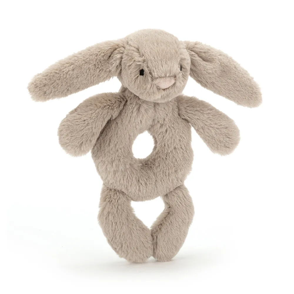 Rigtig fin ringrangle fra Jellycat, med ben og arme så der er lidt mere at holde i. Ringranglen er perfekt til de mindste, også som lille krammebamse.