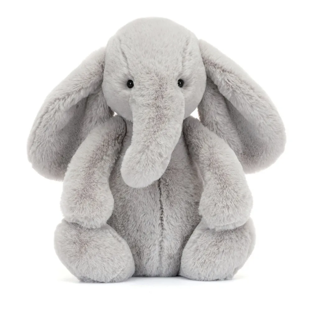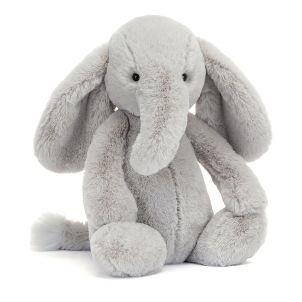 Jeg er en nusser elefant med store øre og blødt snabel, klar til at give dig en masse krammer, og putte med dig.