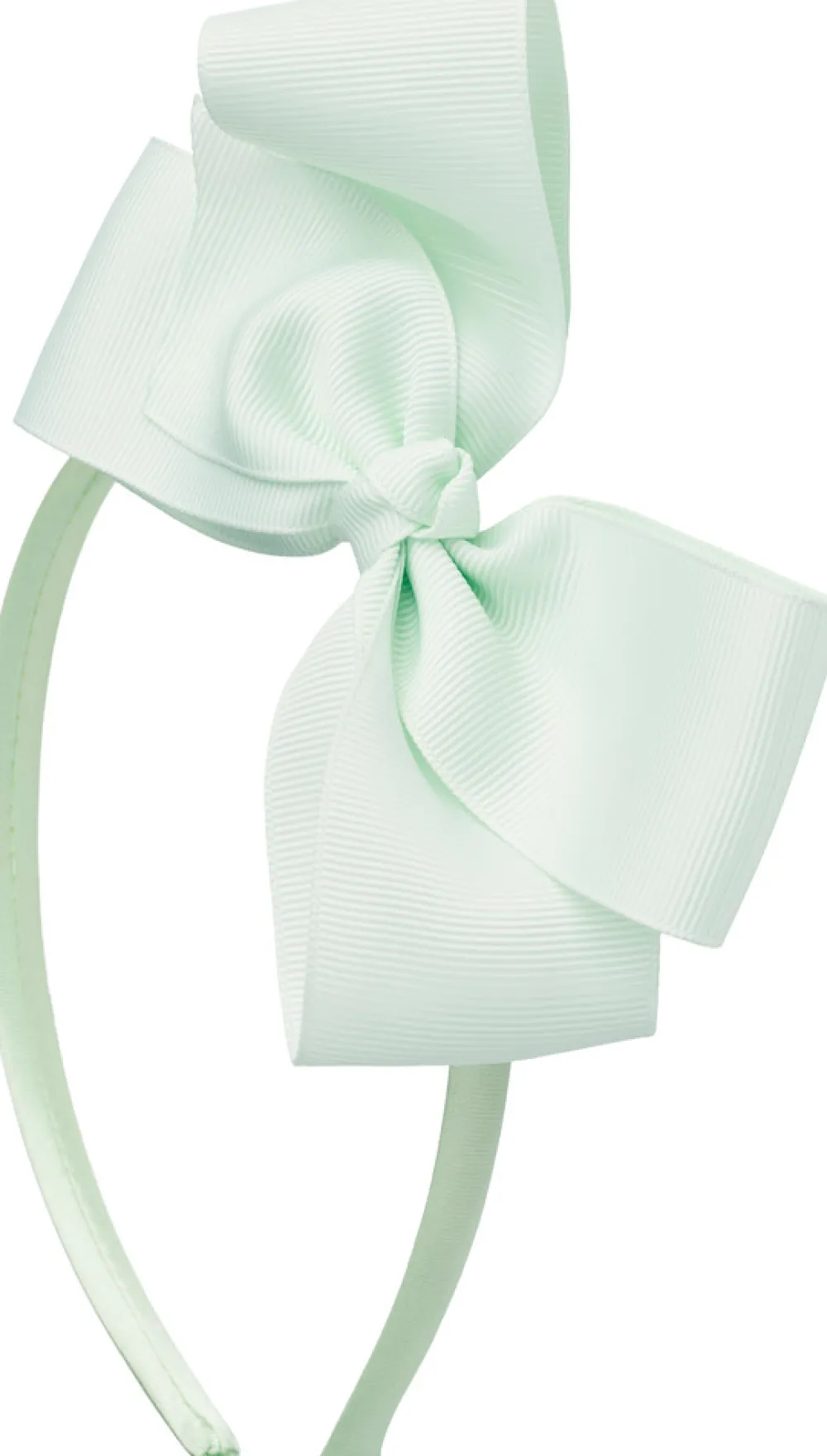 Mint farvet hårbøjle i riflet satin (gross grain)