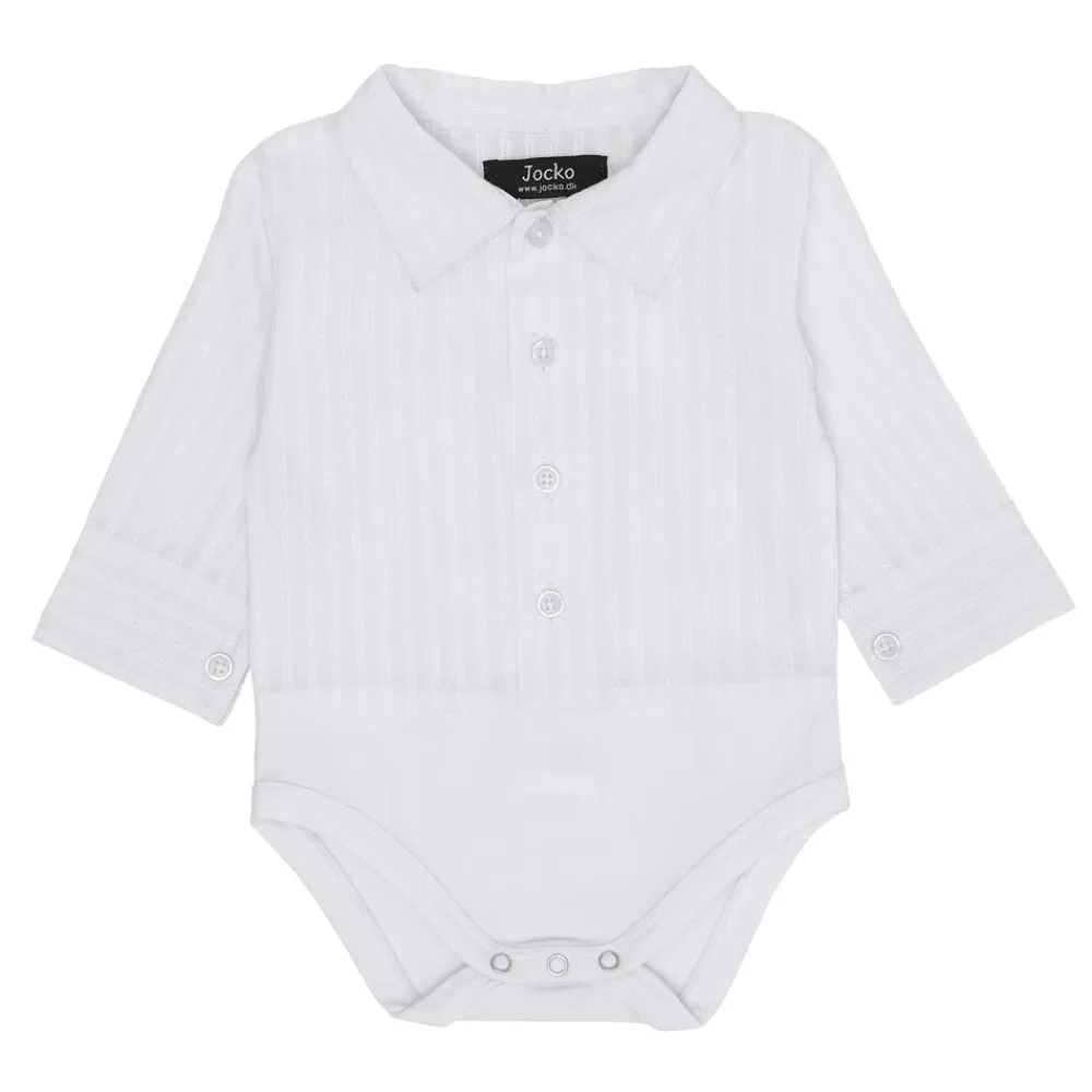 Flot bodyskjorte med krave og knapper. Knapper i bunden af skjorten gør bleskiftningen nem
