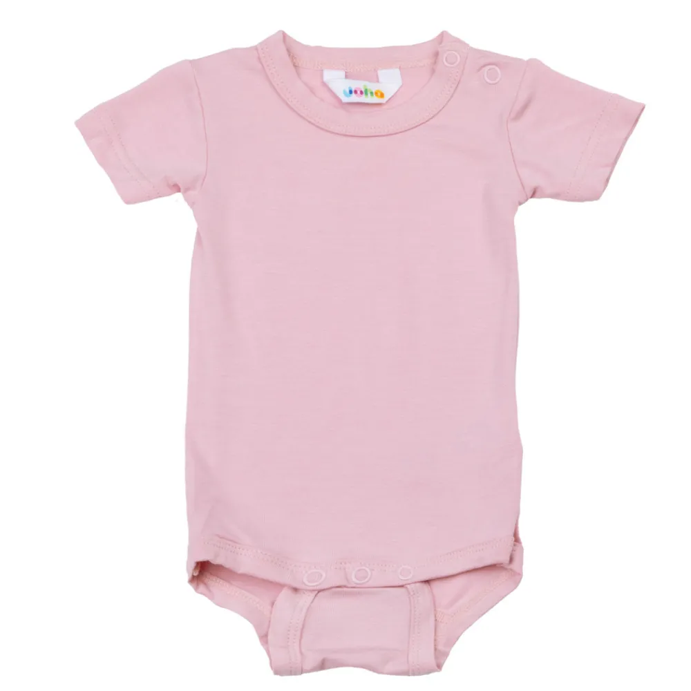 Trykknapper på den ene skulder samt mellem benene for en nemmere påklædning. En elastisk økologisk bambuskvalitet som er dejlig blød og lækker. Perfekt at bruge inderst.