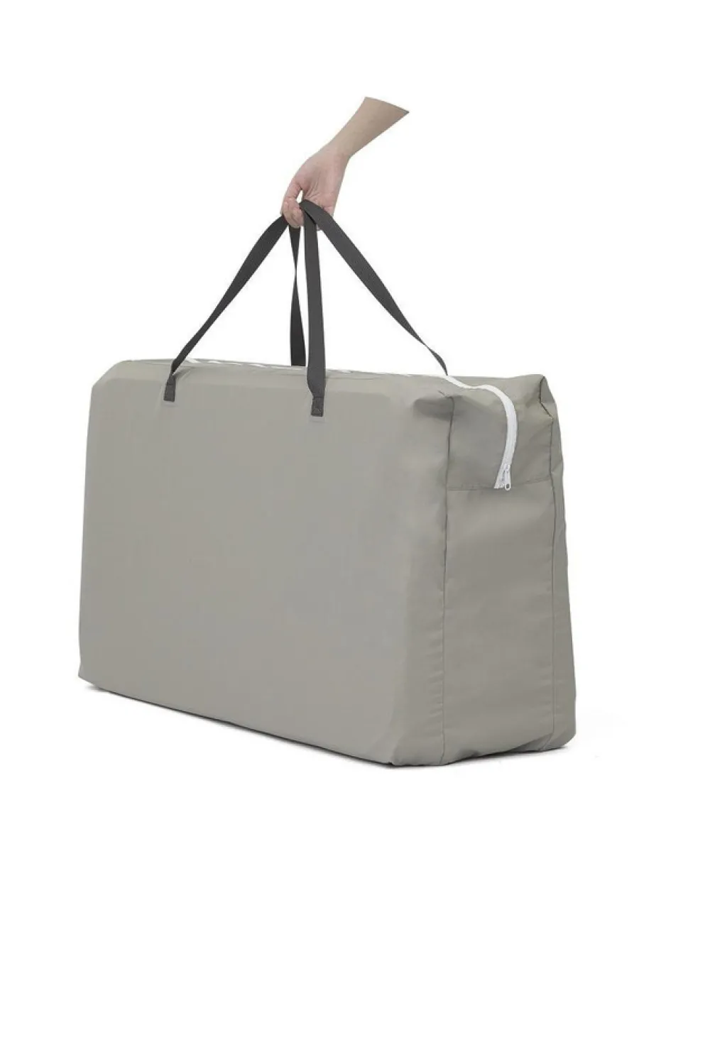 Med Joie Roomie side by side seng får baby en tryg nattesøvn fra start lige ved siden af mor, eller far. Med en side by side er det nemt lige at berolige, nusse eller give mad. Med forskellige højder er det let at finde den perfekte indstilling der passer til jeres seng, og den fastgøres nemt så alle kan sove trygt. Joie Roomie har en beroligende hældning der forsigtigt skåner og hjælper baby med at fordøje deres måltid ved sengetid. Med dobbelt mesh vinduer på begge sider er der god ventilation, og den inkluderet komfortabel madras har ligeledes mesh betræk for øget ventilation. Fire låsebare hjul gør det let at flytte sengen og de er alle dækket med gummi for at holde dit gulv ridsefrit. Vævet stof der nemt kan aftørres for rengøring og madras betrækket kan maskines vaskes. Roomie er let at samle, og hvis man skal have den med på en rejse kan den godt slås sammen, og her medfølger en praktisk transporttaske – det kan også bare være til opbevaring når baby er vokset ud af den.