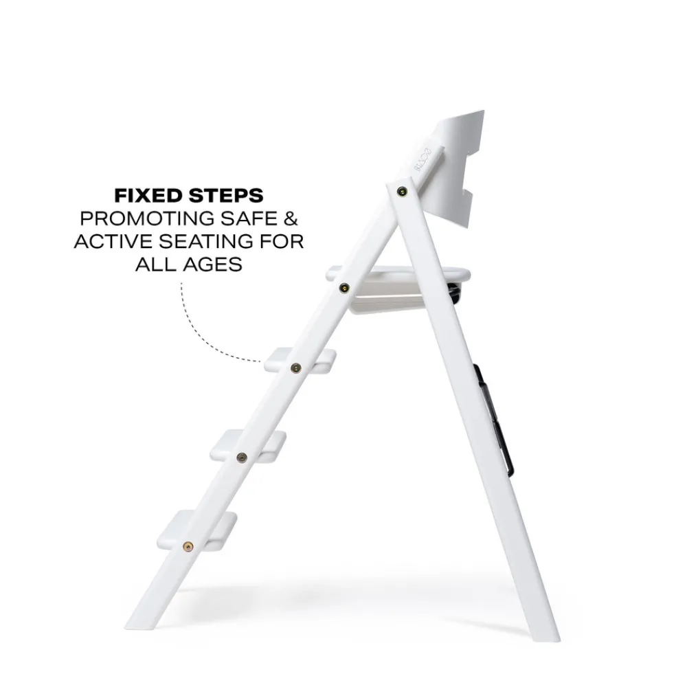 KAOS Klapp er designet til ikke at blive justeret efterhånden som et barn vokser, så det er umuligt at fejljustere noget. De faste stigetrin giver barnet mulighed for at vokse naturligt ind i nye siddestillinger og variere deres ben position. En aktiv siddestilling er god til at opnå den bedst mulige blodcirkulation. Trinene giver også barnet mulighed for at få god balance og fodstøtte.