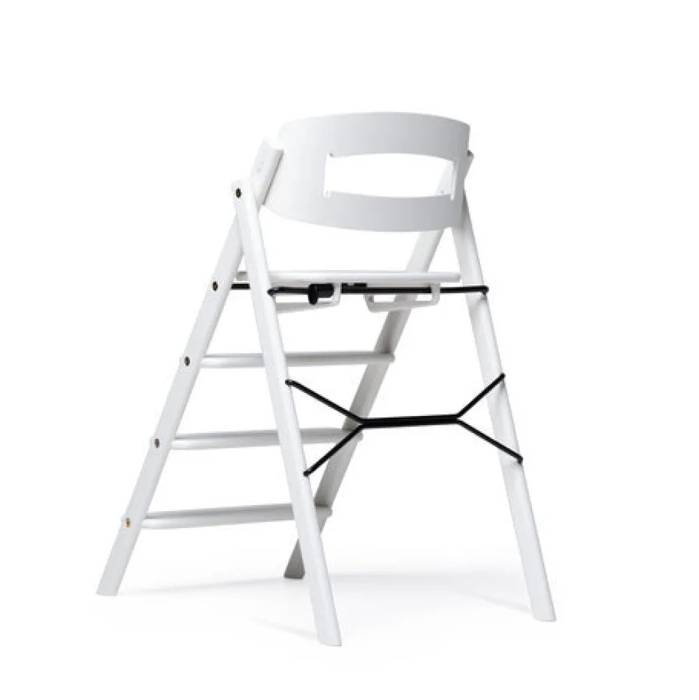 Kaos højstol: En smuk tilføjelse rundt om spiseborderet. Dens foldbare design gør den til en fantastisk pladsbesparende højstol, der også er perfekt lige til at tage med sig. De faste stigetrin er unikke og gør det nemt for barnet at klatre op og ned af KAOS Klapp højstolen på egen hånd. Barnet får en ergonomisk og aktiv siddeplads og hviler benene naturligt ved de forskellige trin, når de vokser. Bare fold stolen ud, klik sædet i låseposition, og den er klar til brug.