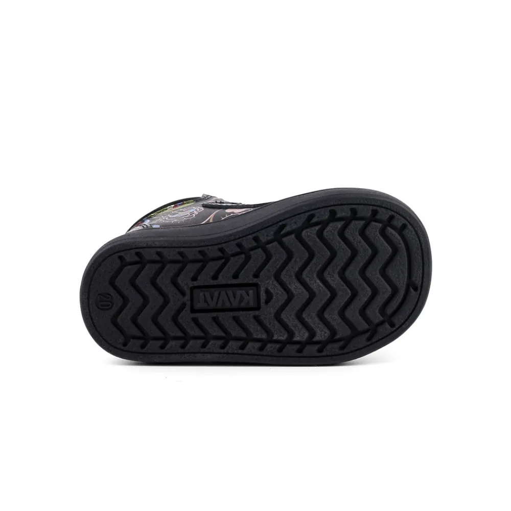 Kavat vinterstøvlerne er designet med et mellemhøjt skaft, der går op over anklerne og giver god støtte og beskyttelse mod kulde og sne. Støvlerne lukkes nemt og sikkert med en bred velcrorem over vristen, hvilket gør dem lette at tage af og på – også for de mindste.