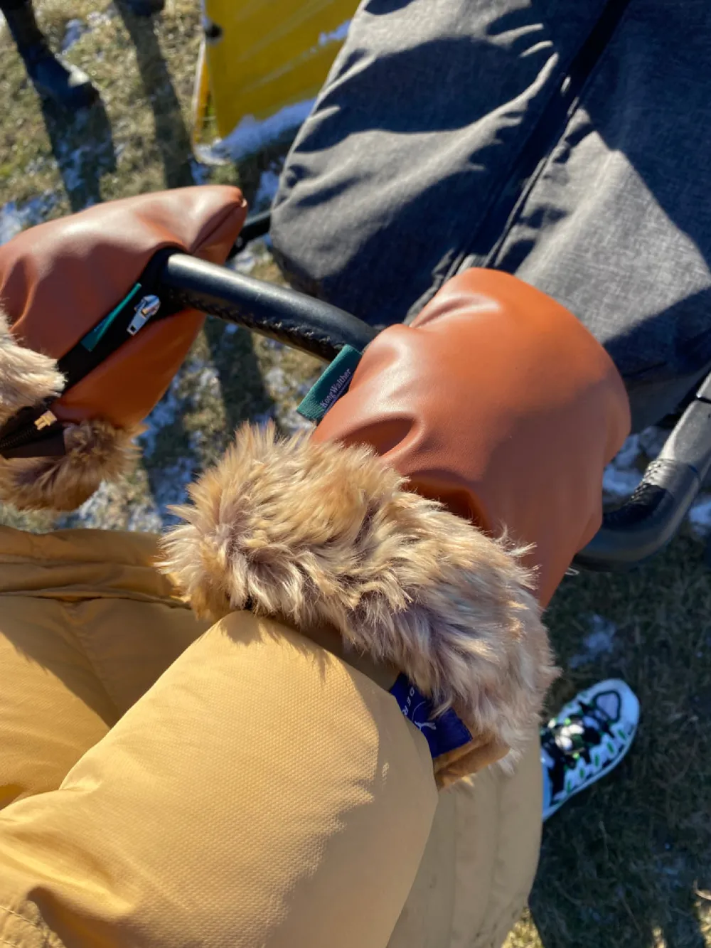 Barnevogns lufferne er lavet af imiteret læder og fleece-for.