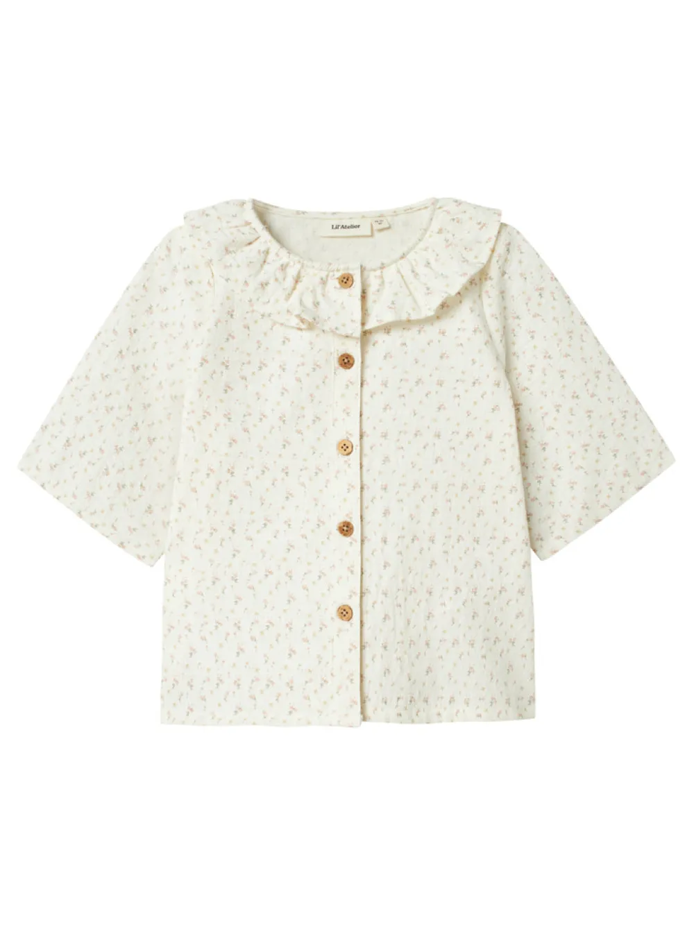 Giv din piges garderobe et friskt pust med denne charmerende skjorte med sød flæsekrave og fine knapper i sødt træ look. Skjorten er perfekt til både hverdag og særlige lejligheder, og den kombinerer klassisk ternet mønster med en moderne flæsekrave for et unikt look.