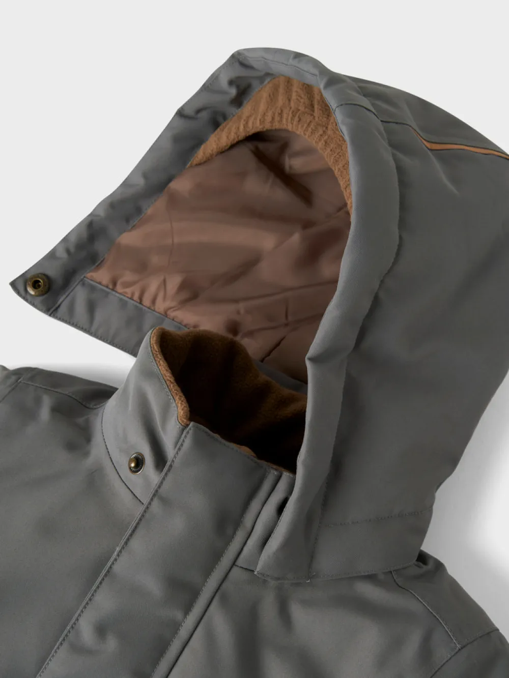 Ekstra detaljer: Badge, lynlåsbeskytter for at forhindre, at lynlåsen fanger i huden side lommer og aftagelig hætte.