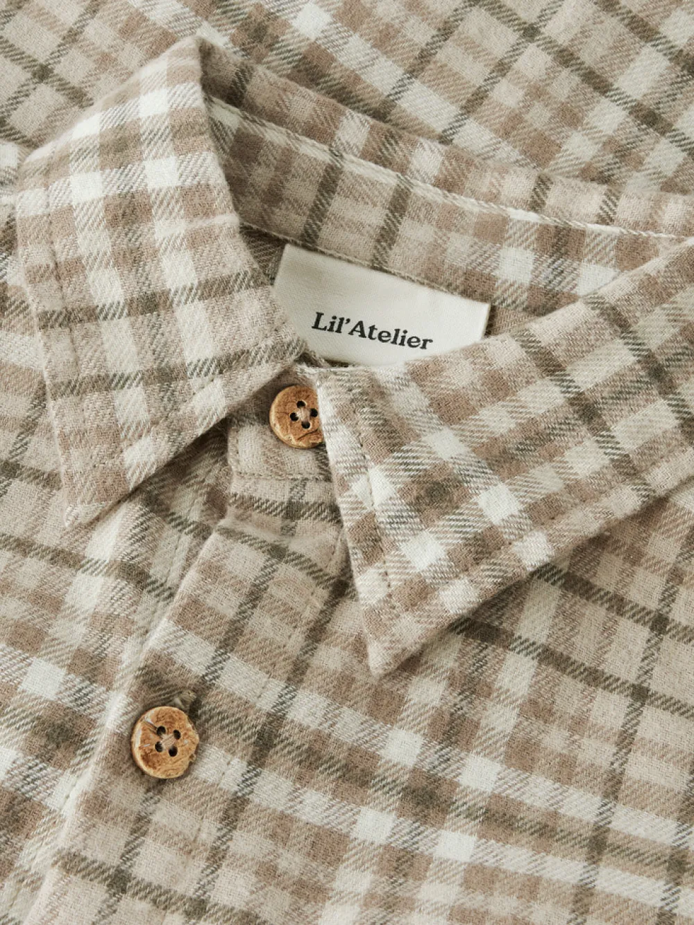Rebel Skjorte i farven Sepia Tint fra Lil’ Atelier er et skønt valg til garderoben, hvor både komfort og stil er i fokus. Skjorten har et klassisk ternet mønster i afdæmpede nuancer, der passer til enhver anledning. Den bløde kvalitet og den behagelige pasform gør den ideel til både leg og pæne stunder. Med fine træknapper og en praktisk brystlomme får du et tidløst look, der kan styles med både bukser og shorts. Skjorten er nem at tage af og på, og den kan bruges alene eller som let overtøj over en t-shirt. Perfekt til børn, der ønsker at være både smarte og komfortable.