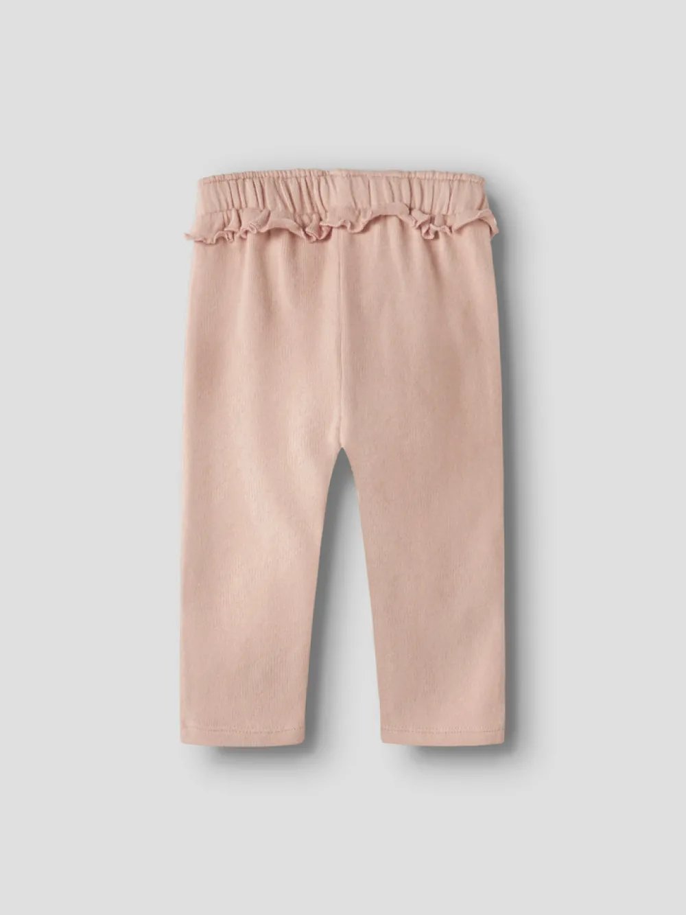 Sæt det perfekte outfit sammen til dit barn med kvalitetsstilarter til hverdagsbrug, og skab et behageligt og trendy look.Jersey er et let og elastisk stof med en blød overflade og inderside, der giver en behagelig fornemmelse og bevægelsesfrihed. – Produkttype: Bukser – Ekstra detaljer: Justerbar talje, mærke, flæser – Pasform: Løse bukser har en tætsiddende overdel og løse ben – Advarsel: ADVARSEL! Holdes væk fra ild – Fastgørelsestype: Fast snor