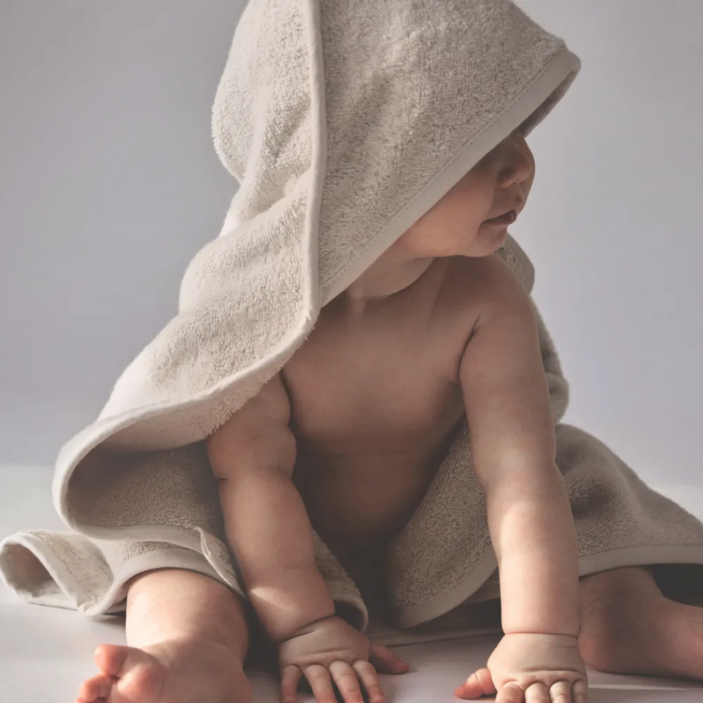 Babyhåndklædet vil give dit barn ekstra blødhed og komfort i mange år frem. Den praktiske hætte tilføjer en sjov og legende dimension til badetiden. Dette håndklæde er den ideelle ledsager til svømmehallen, stranden eller derhjemme på badeværelset.