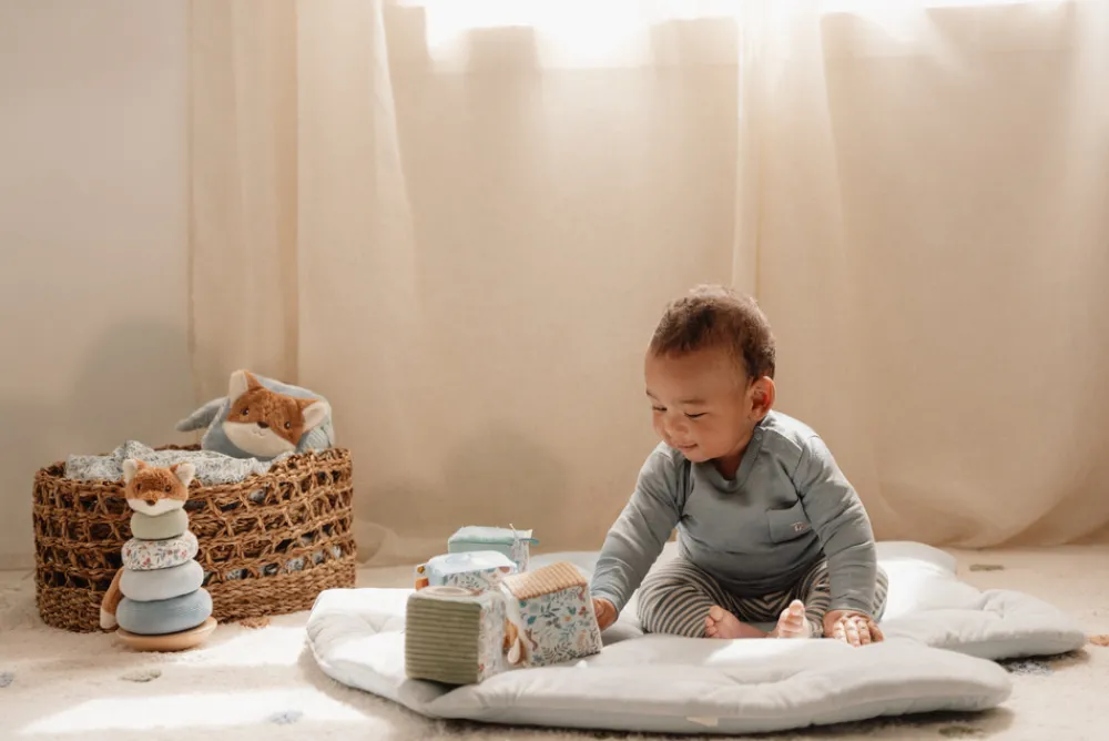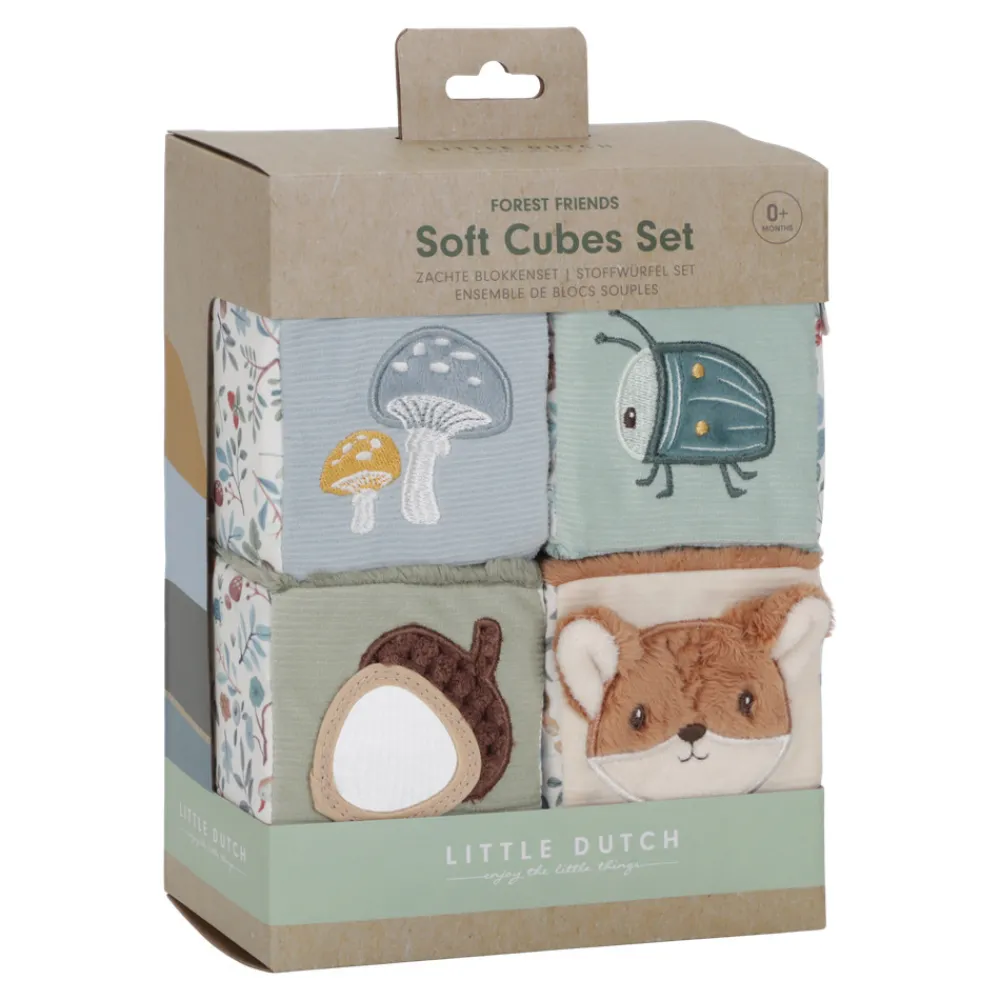 Med forskellige lyde, teksturer og farver at udforske vil dette sjove og søde sæt af bløde aktivitetsterninger fra Forest Friends kollektionen holde din lille underholdt i timevis, samtidigt med at det fremmer hånd-øje-koordination på en legende måde. Sættet består af 4 plysterninger i smukke farver og tallene fra 1 til 4. Terningerne er lette at gribe om for små hænder og der er masser af sjove mærkater, teksturer og et spejl at udforske.